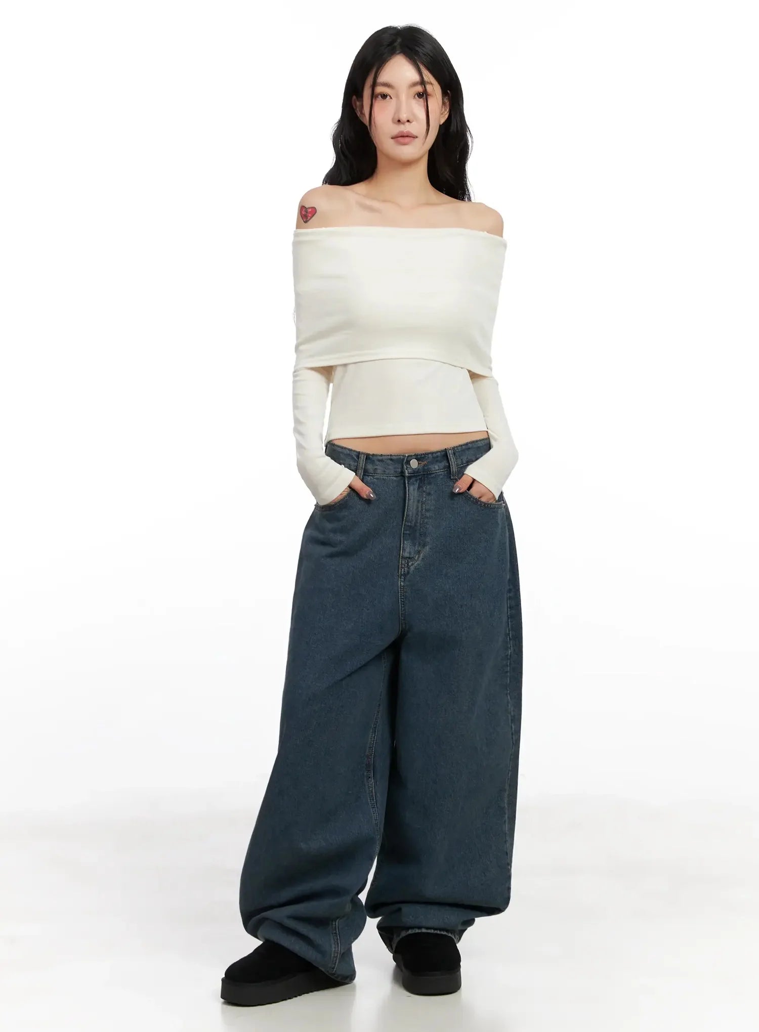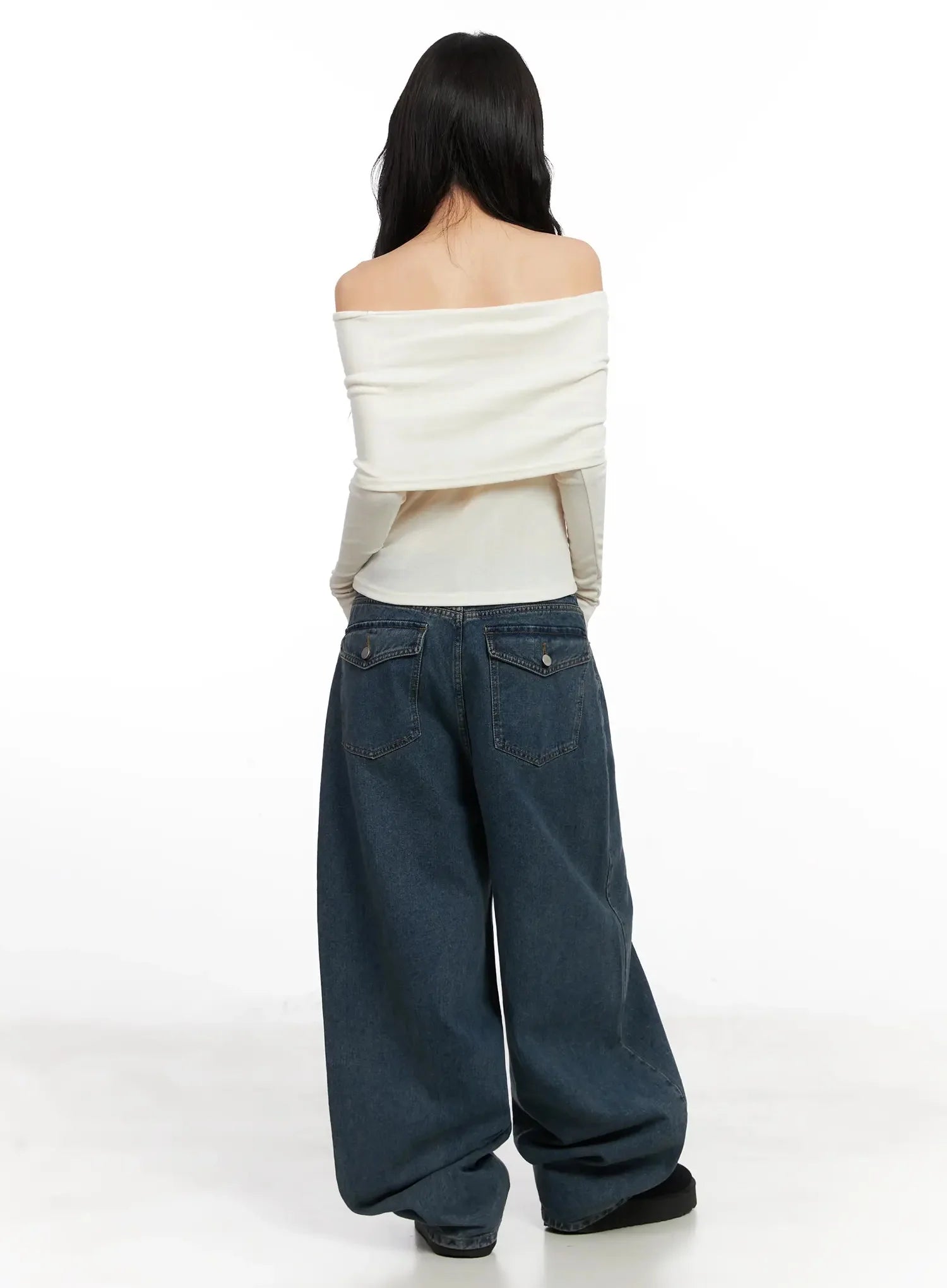 Slim Off-Shoulder Long Sleeve Tee IN528