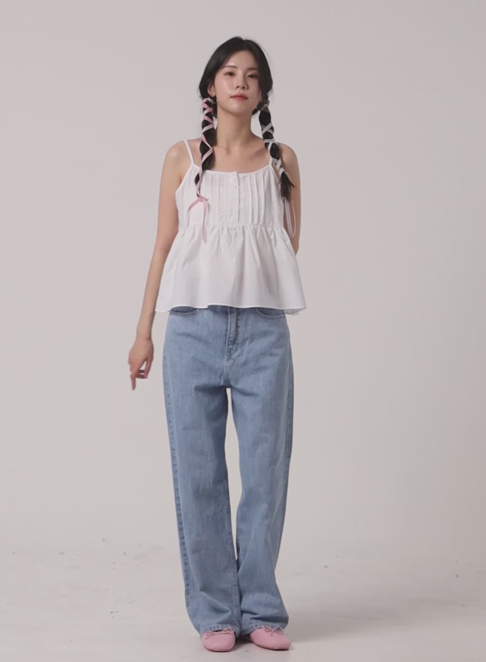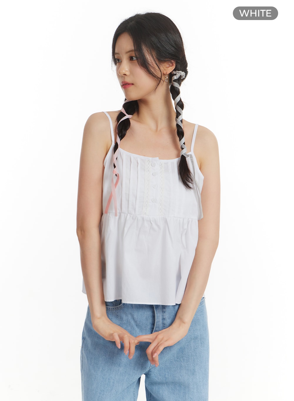 Solid Ruffle Hem Button-Up Cami Top OM406