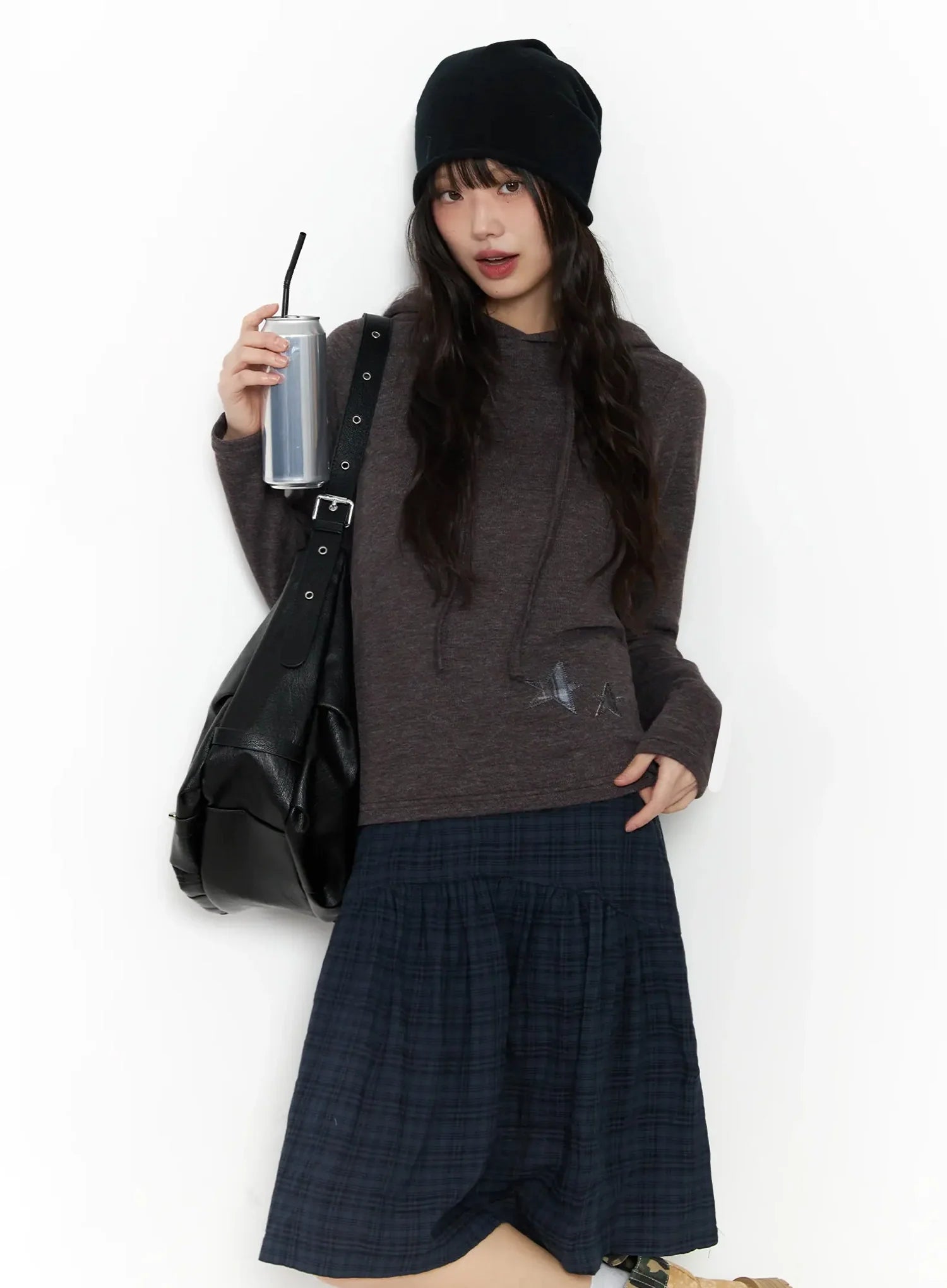 Model is wearing size S/M and the color Dark brown.