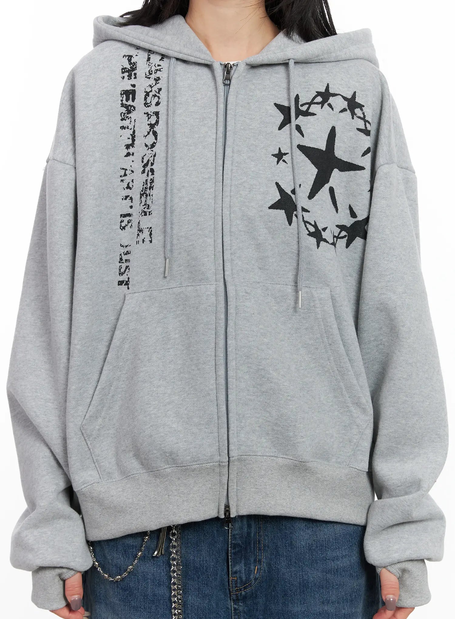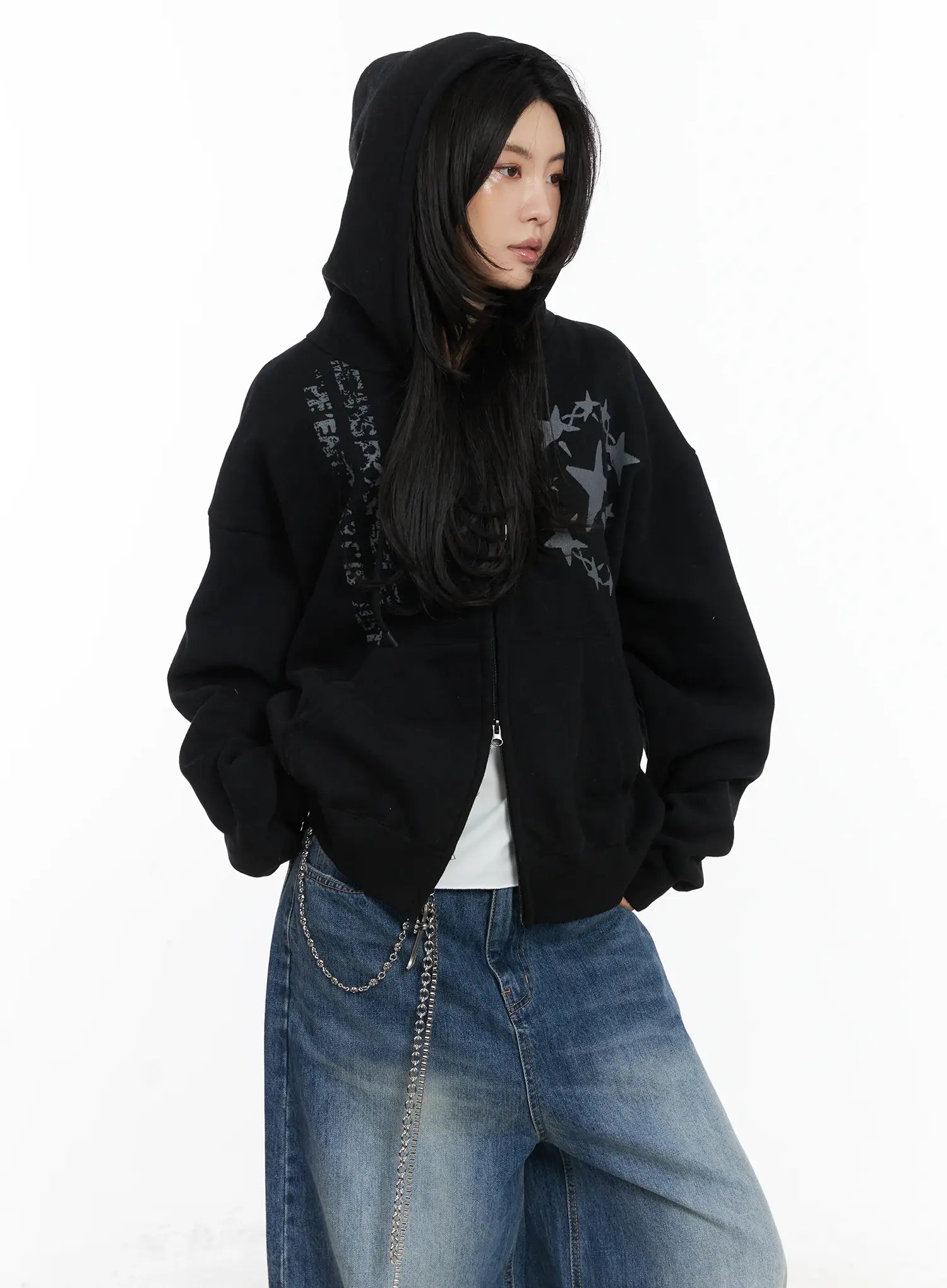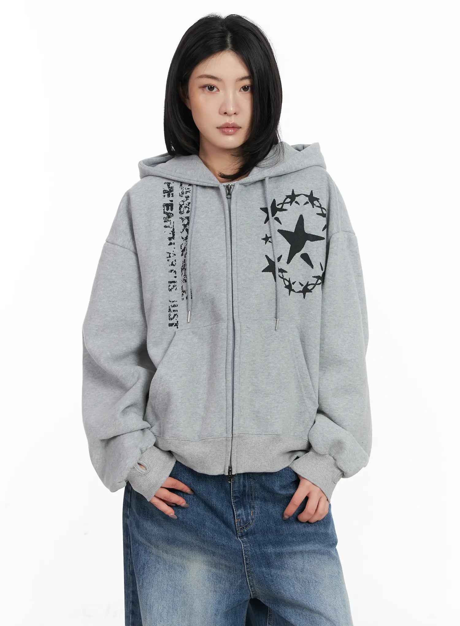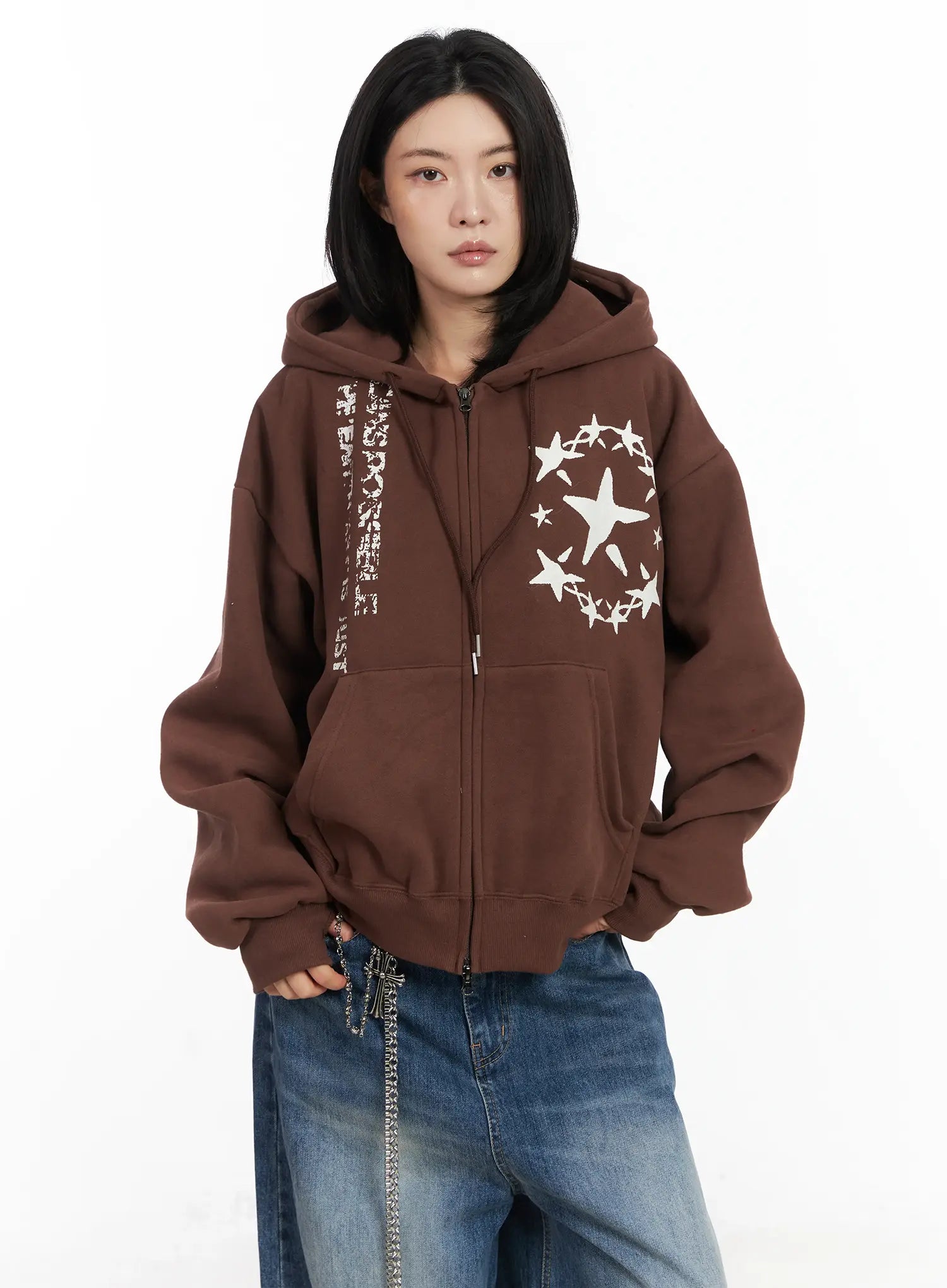 Star Print Cozy Zip-Up Hoodie CN528