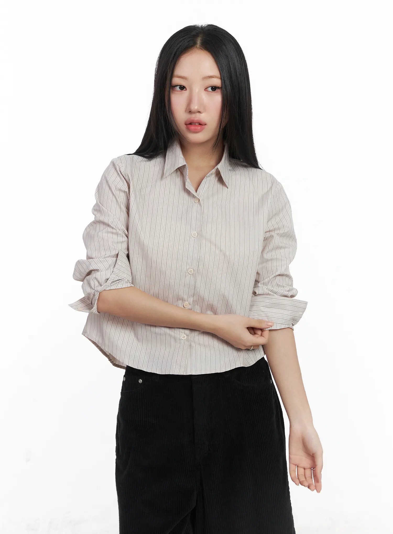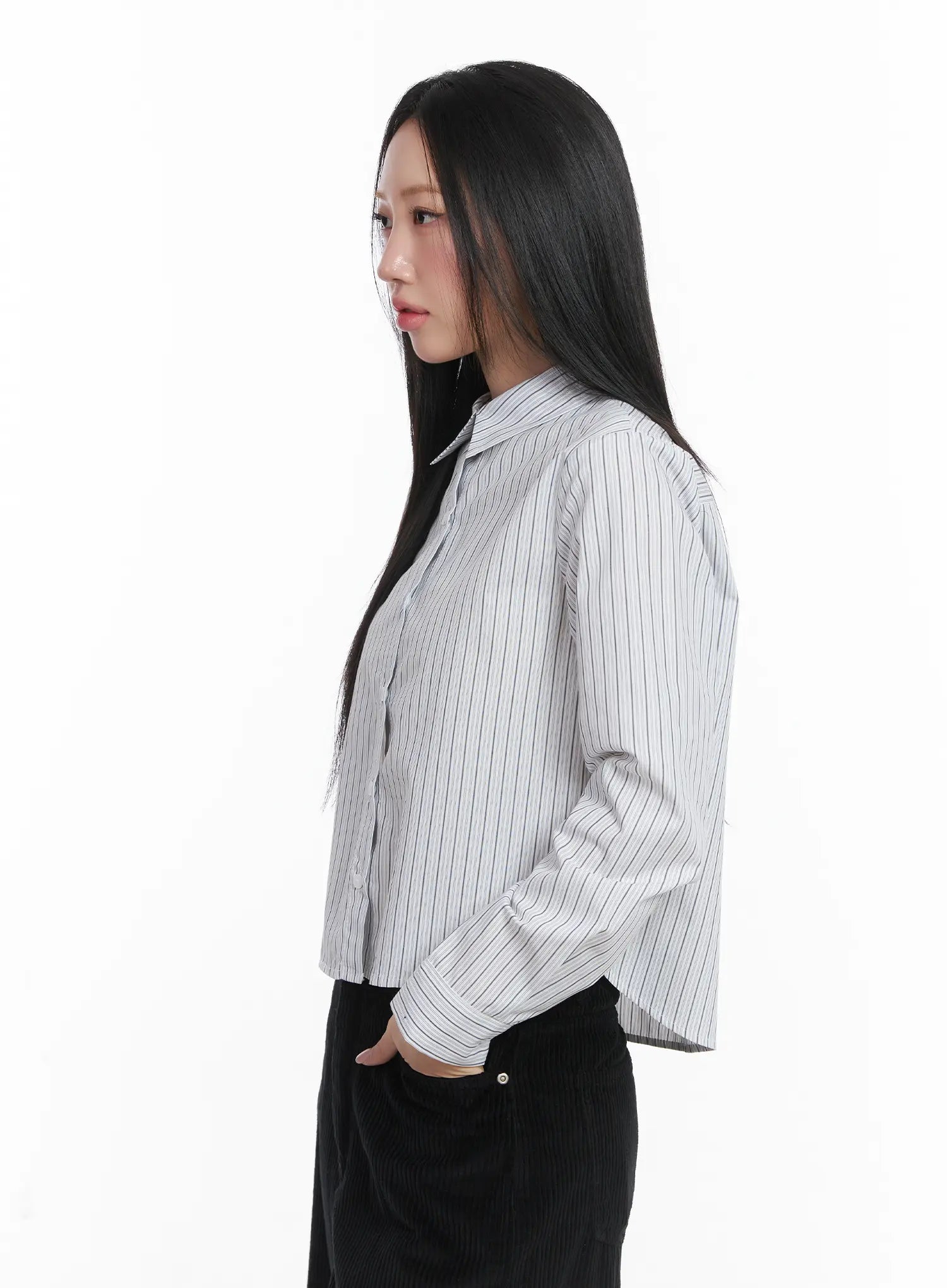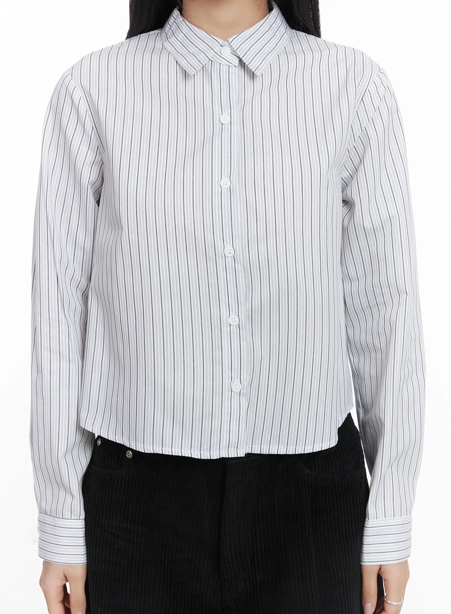 Striped Crop Button-Up Shirt CD529