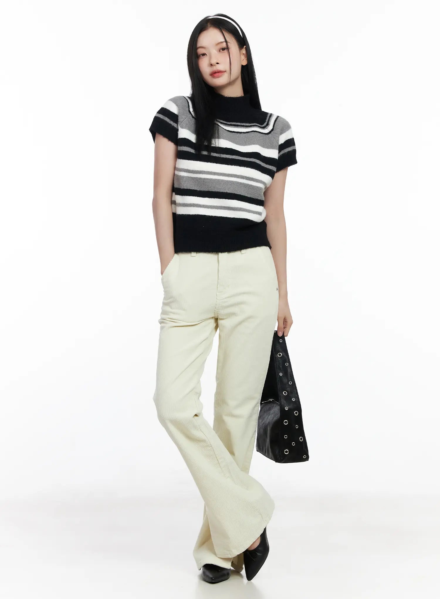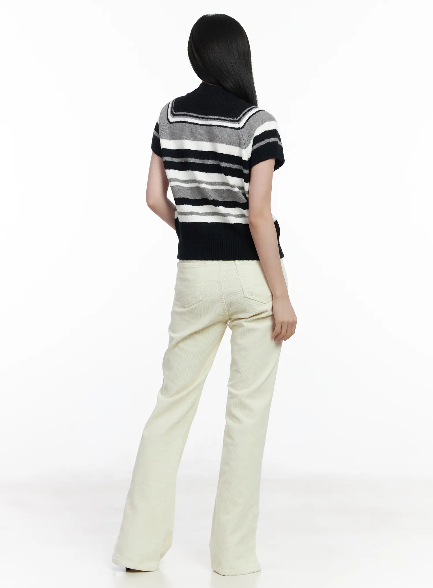 Striped Turtleneck Short Sleeve Knit Top CJ520