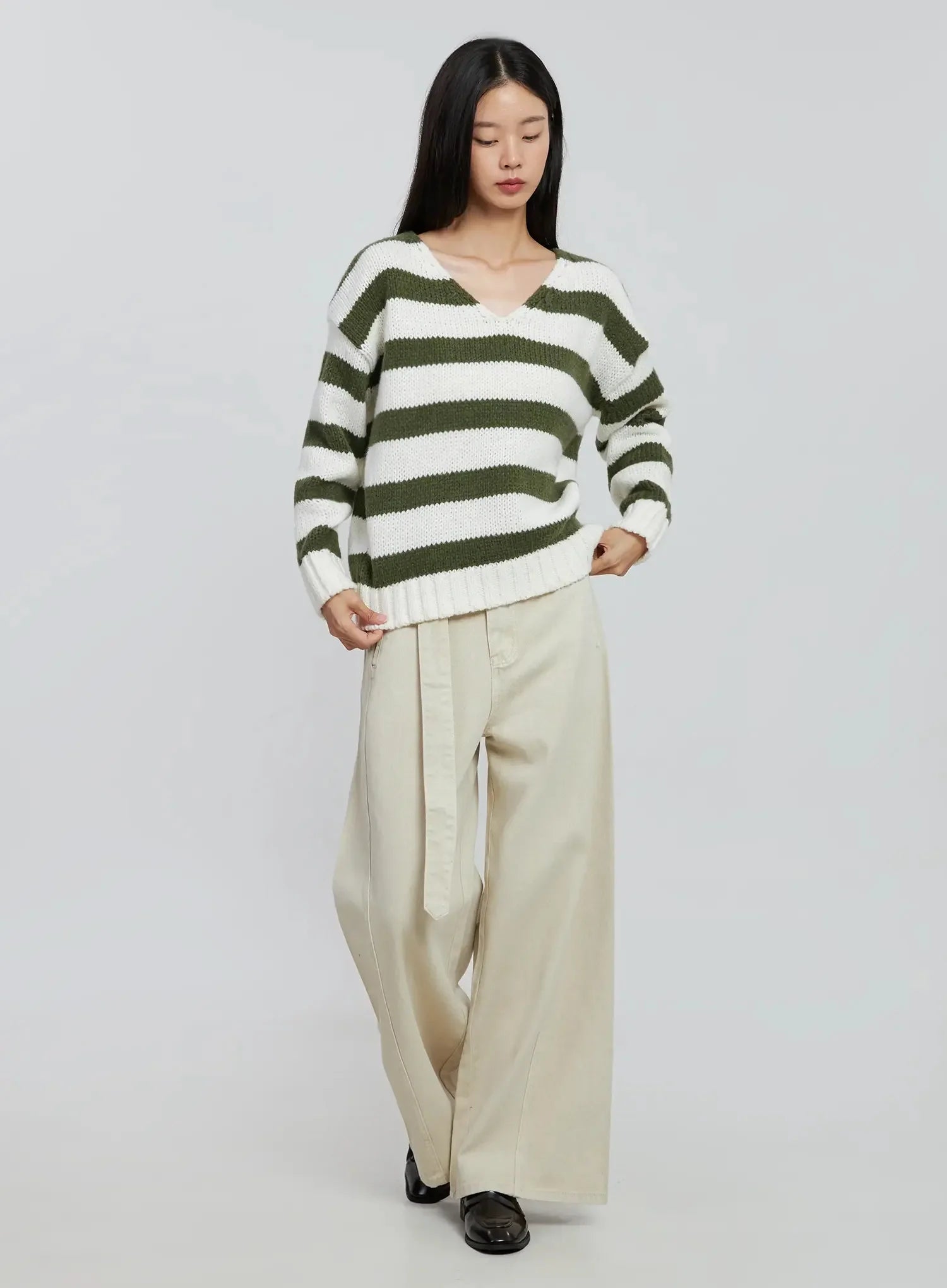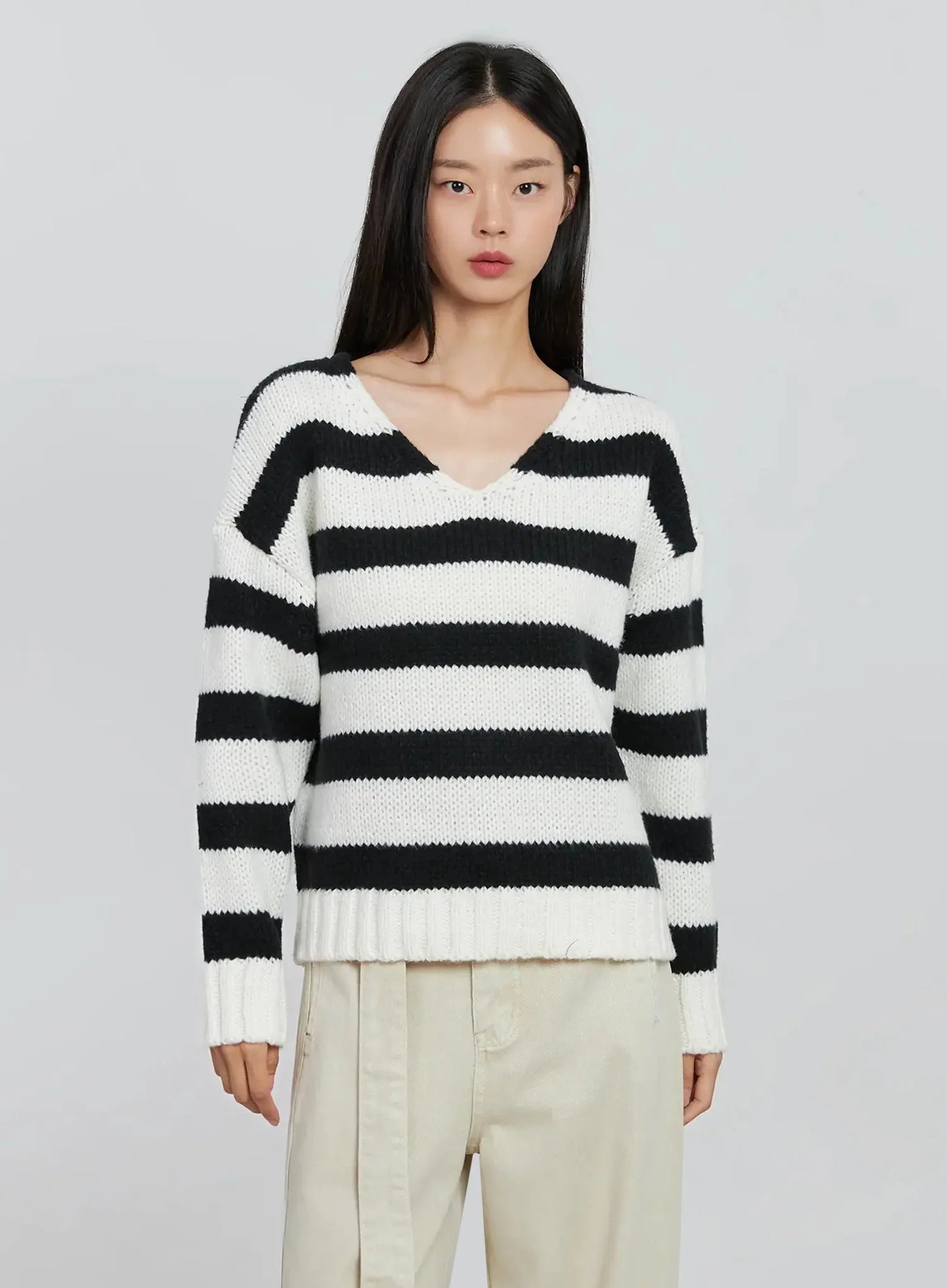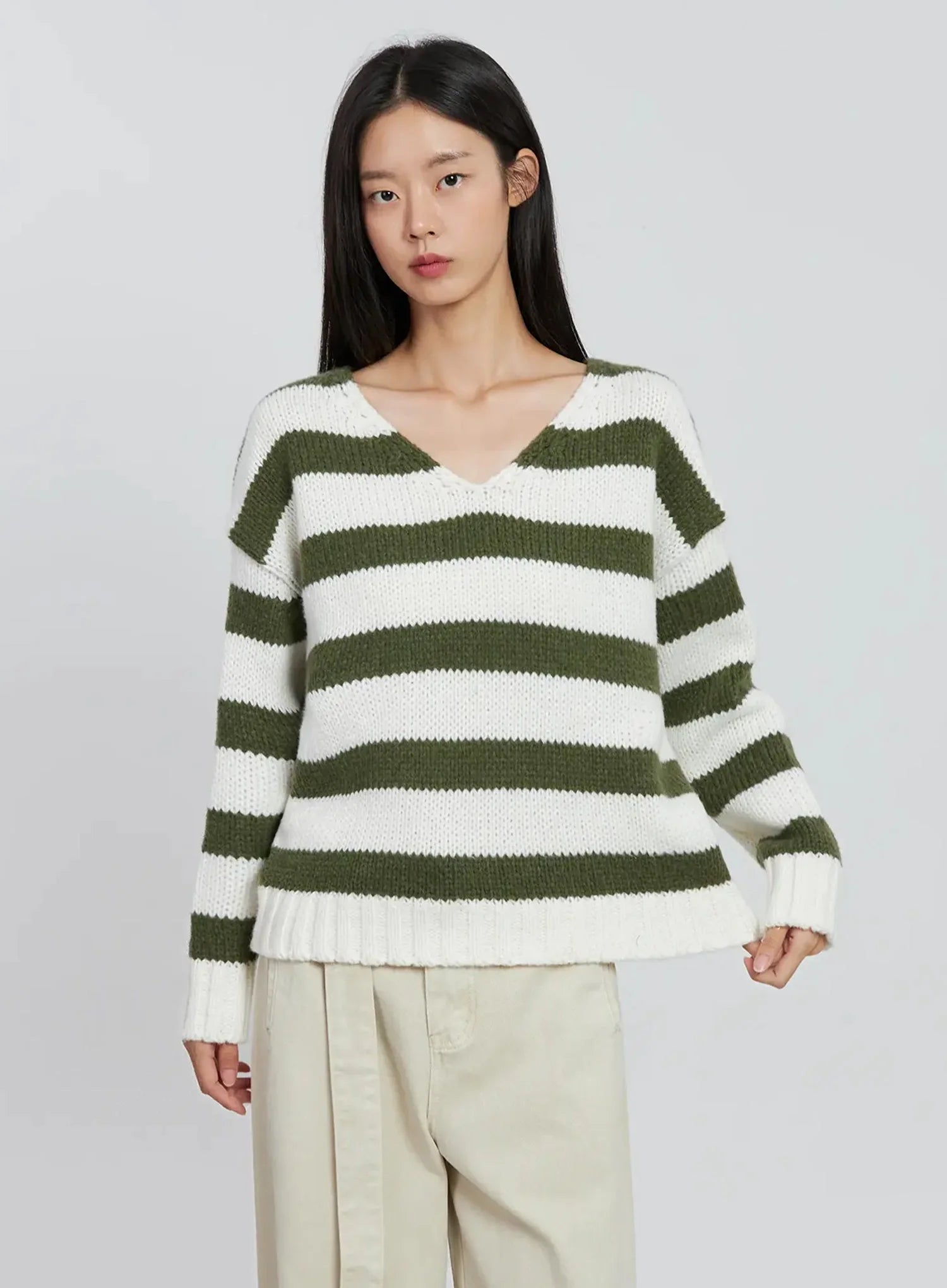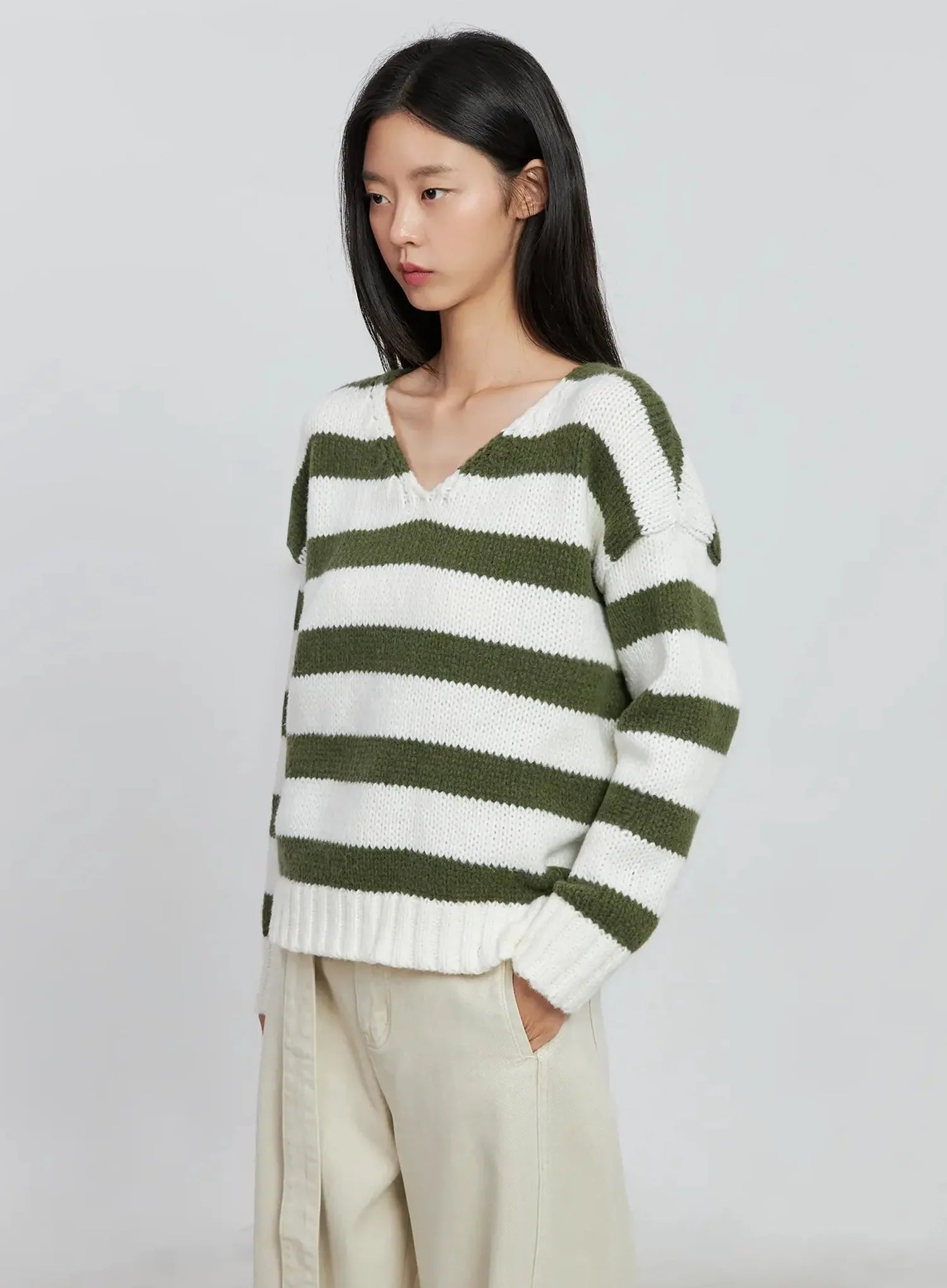Striped V-neck Sweater IO530