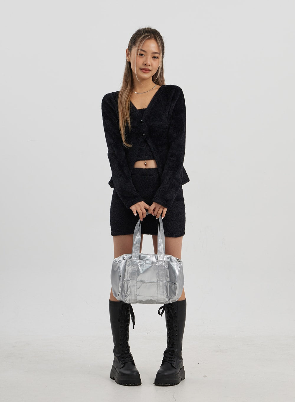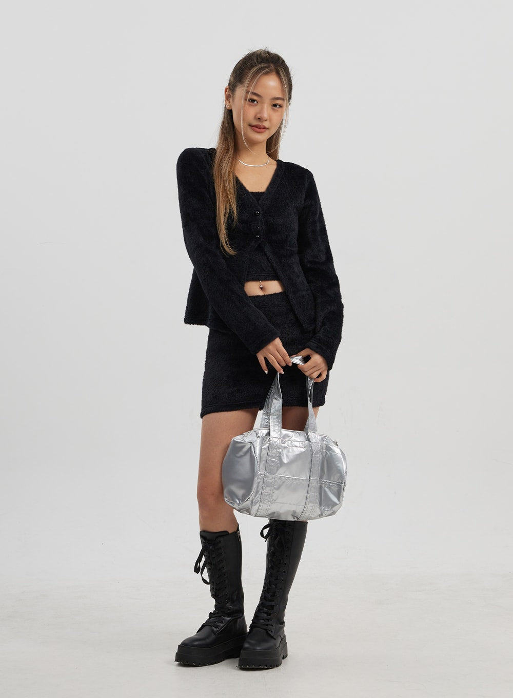 Teddy Cardigan Tube Top And Mini Skirt Set CJ325