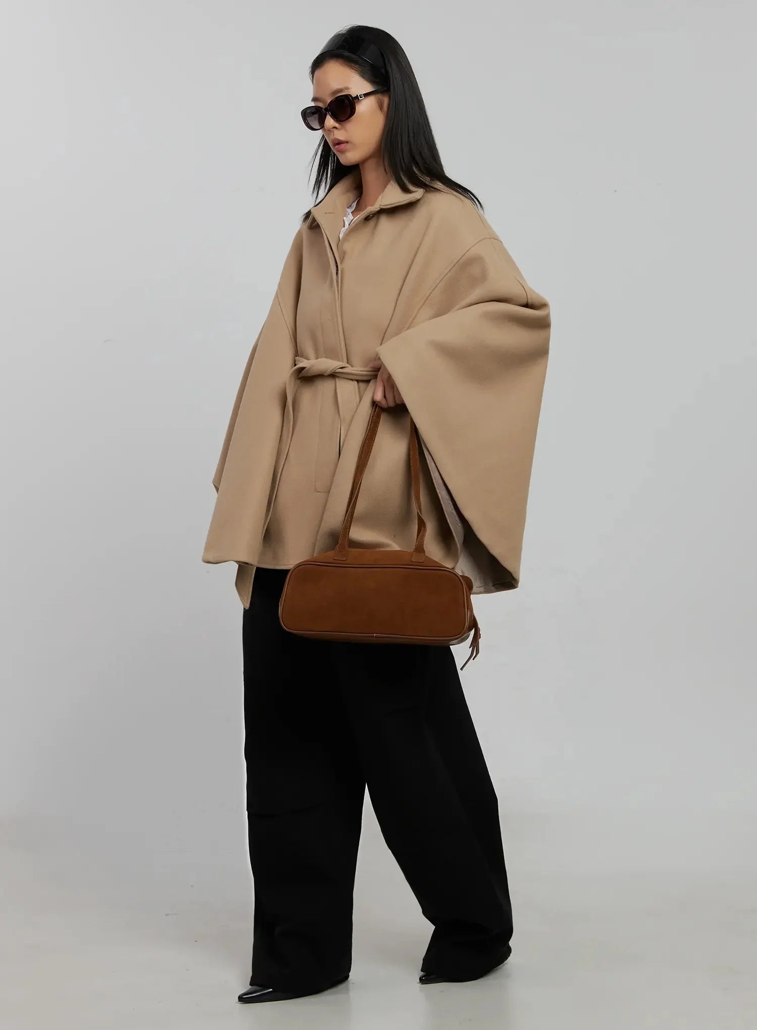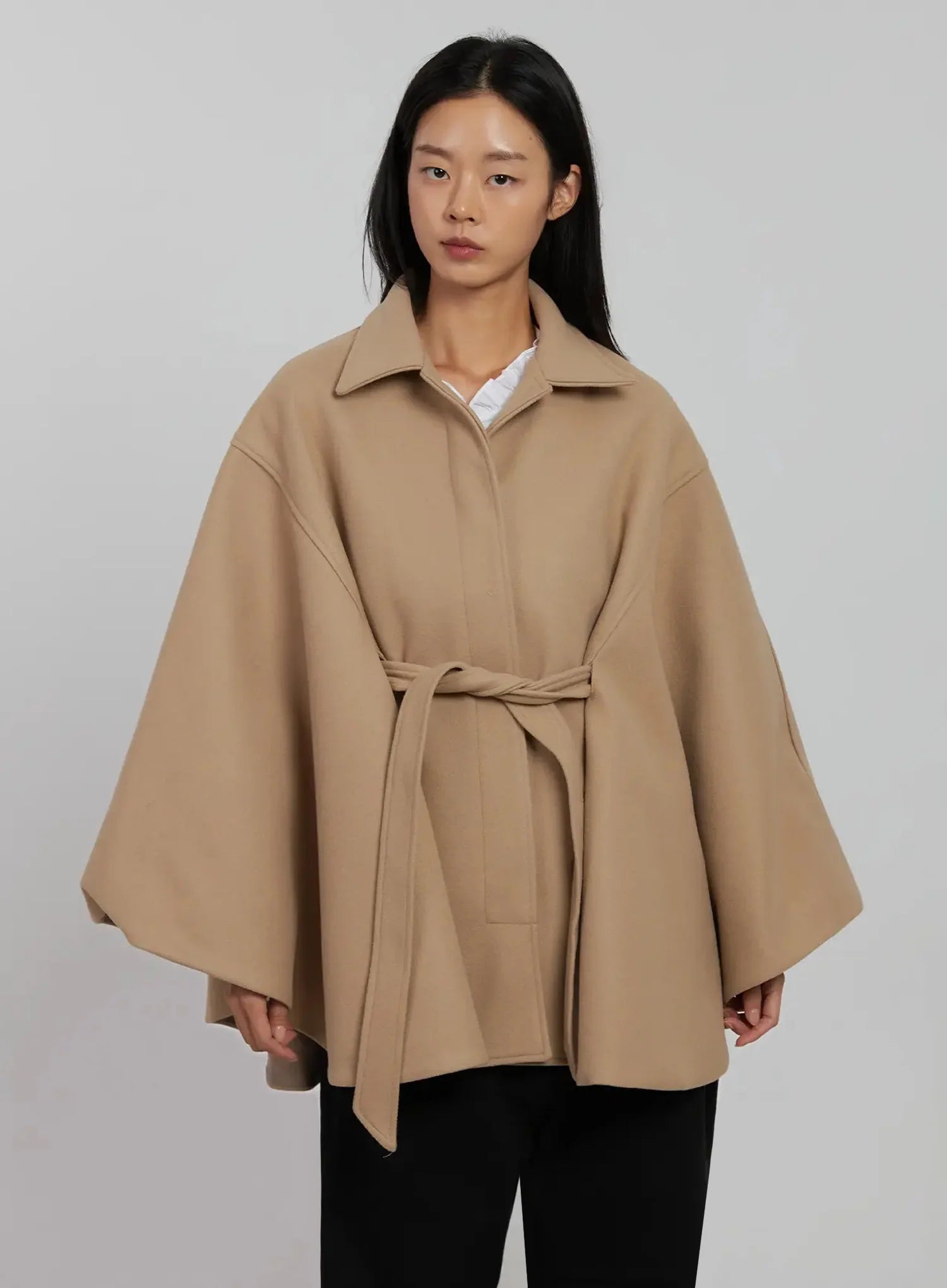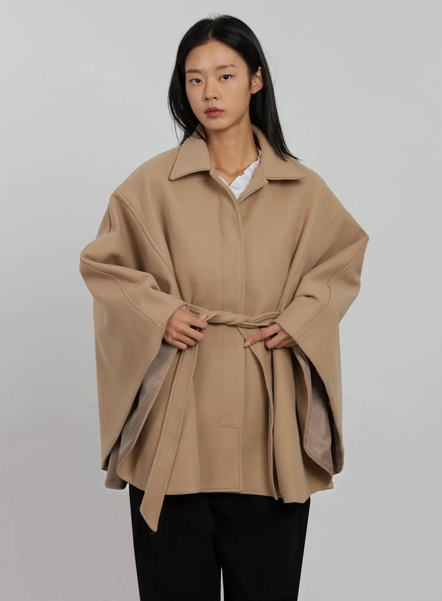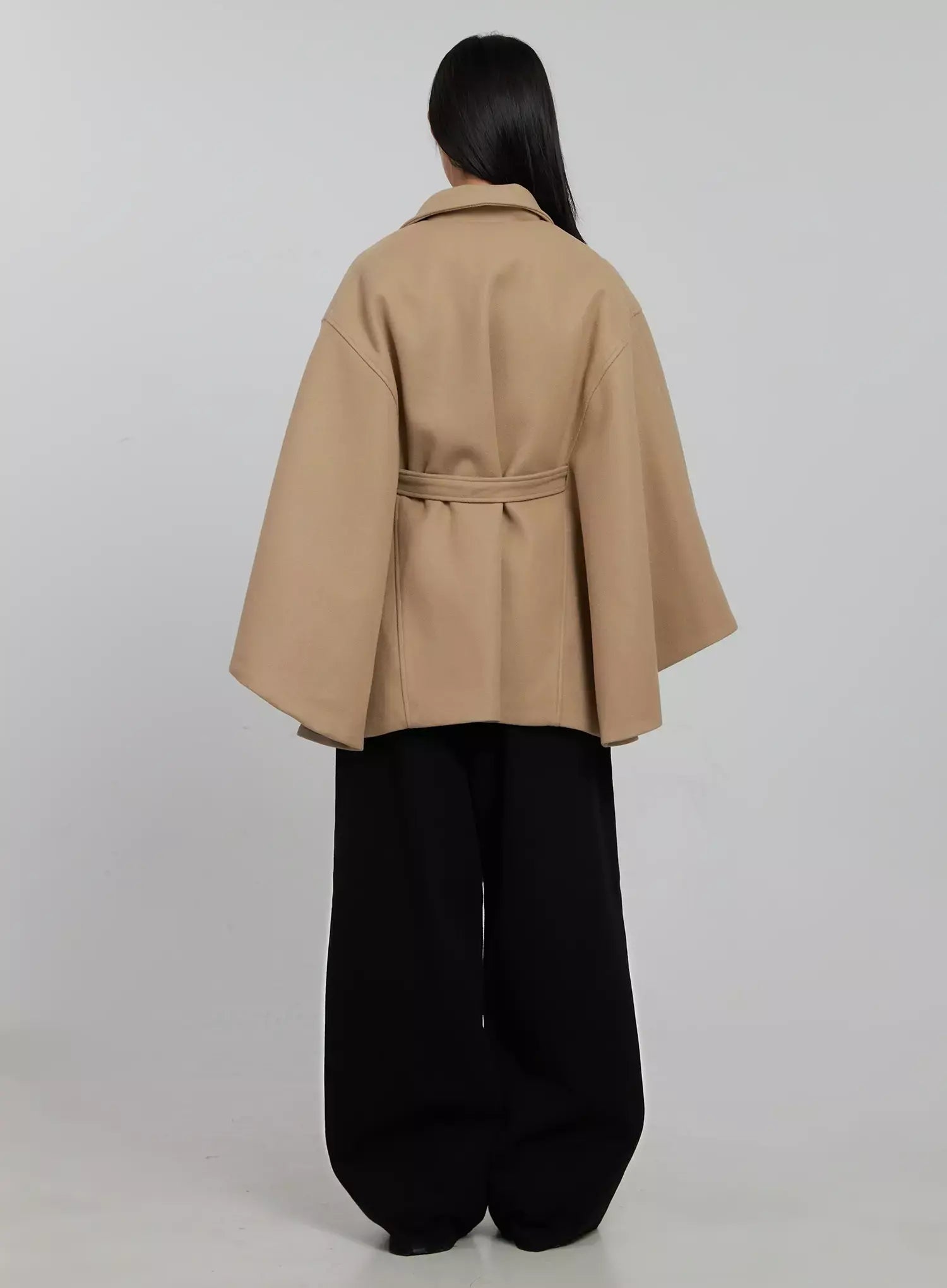 Tie Waist Cape Coat IJ509