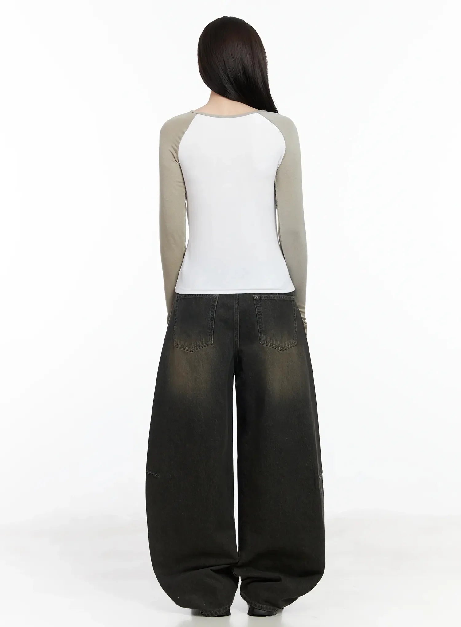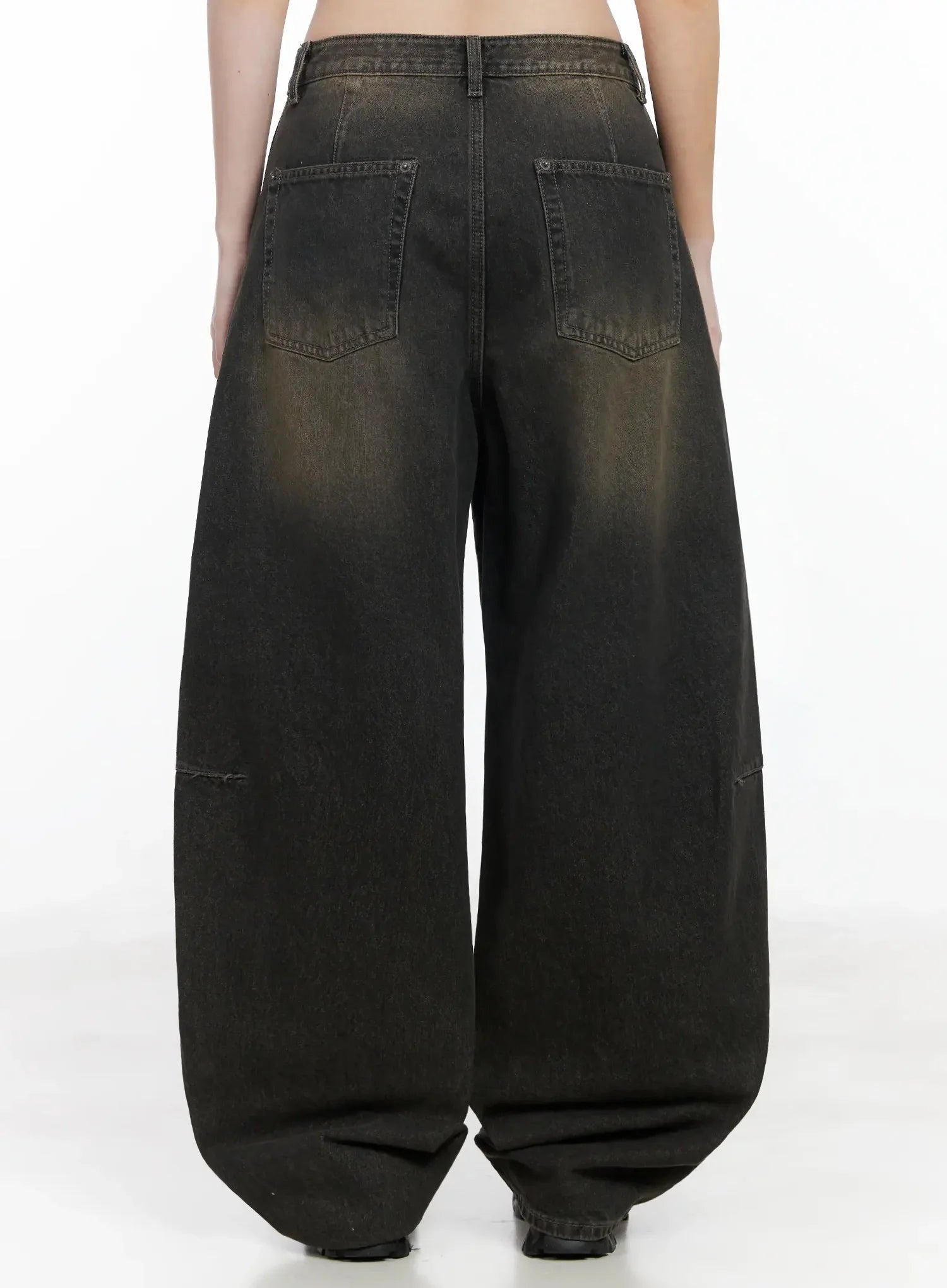 Tracey Vintage Black Washed Wide Leg Jeans IJ528