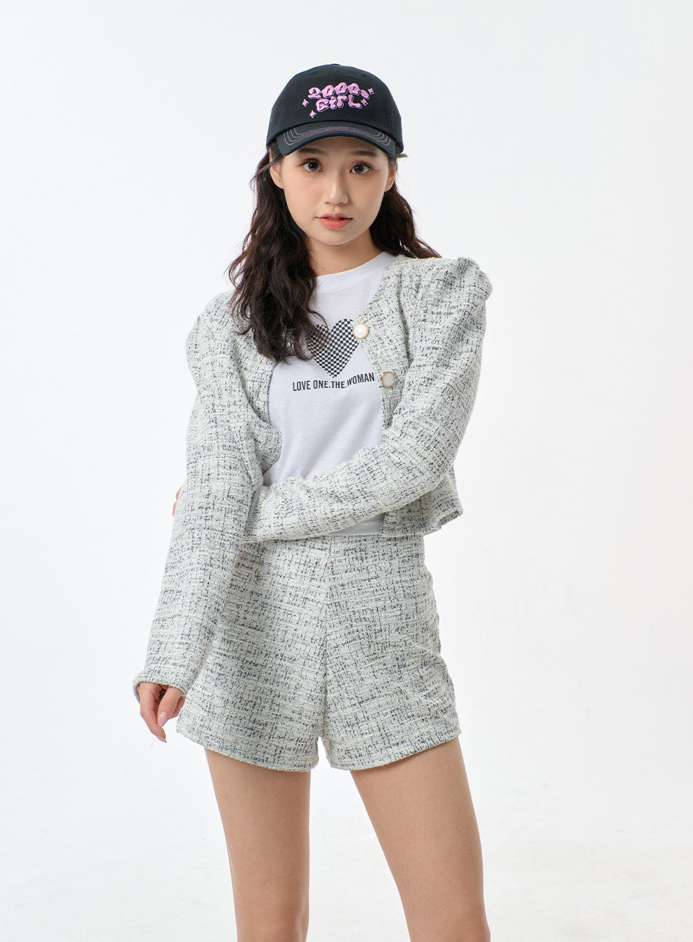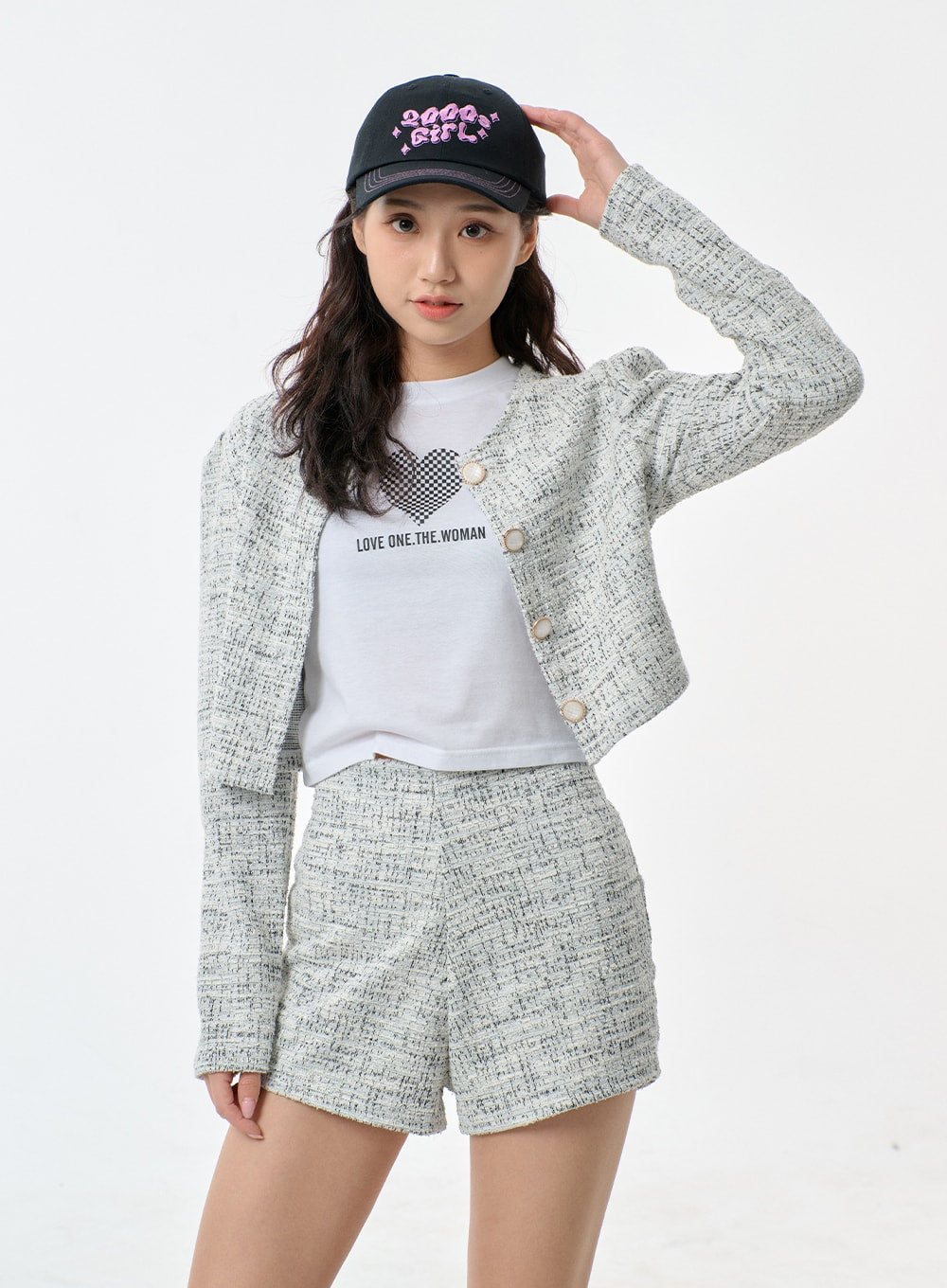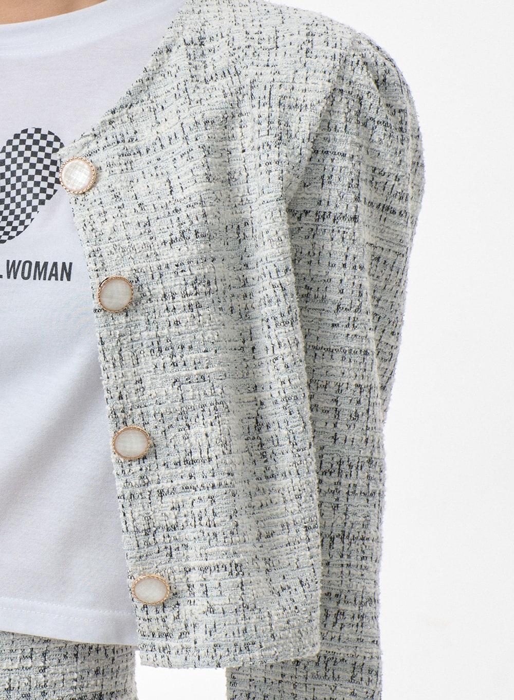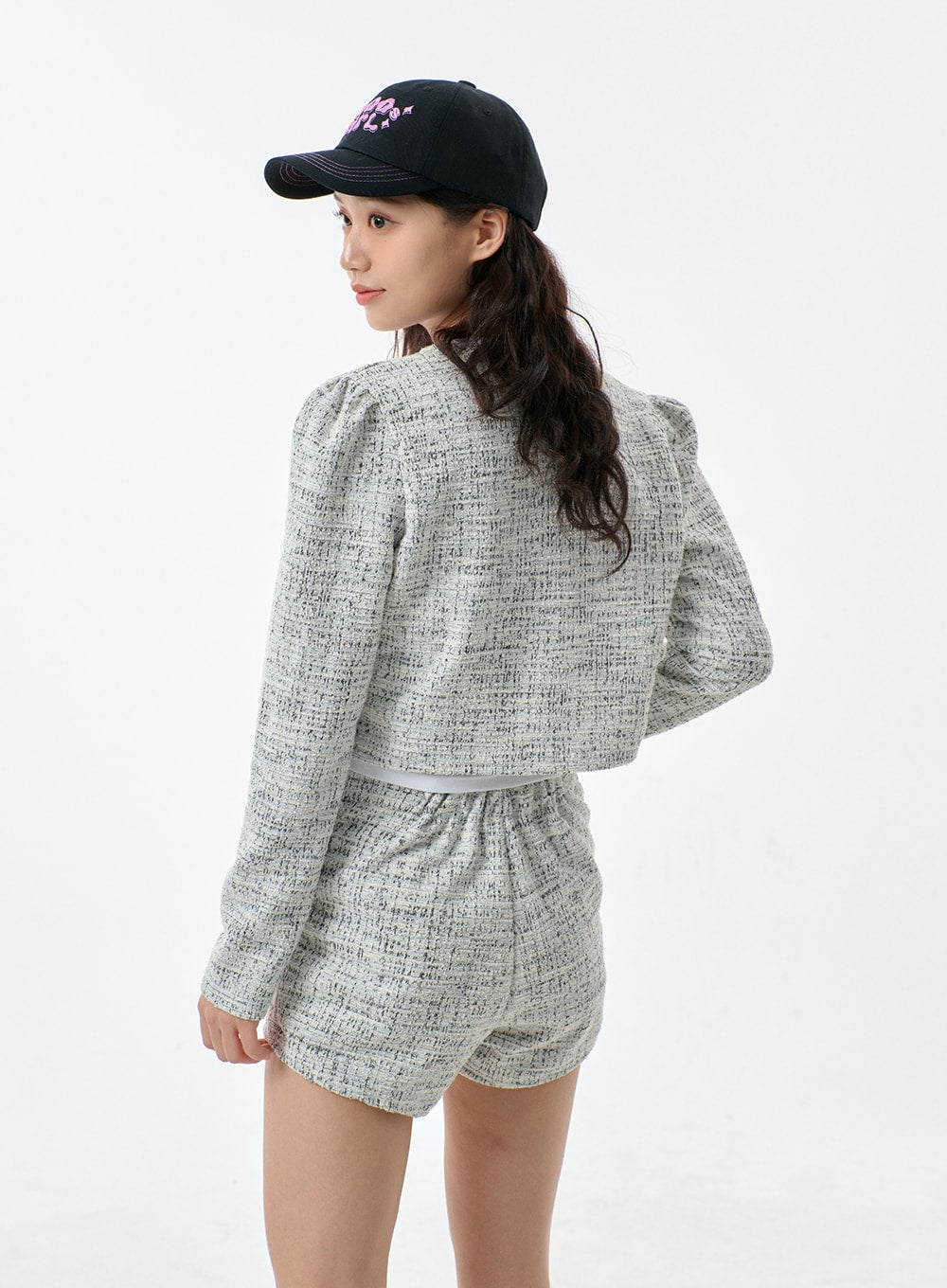 Tweed Cropped Cardigan And Shorts Set BF301