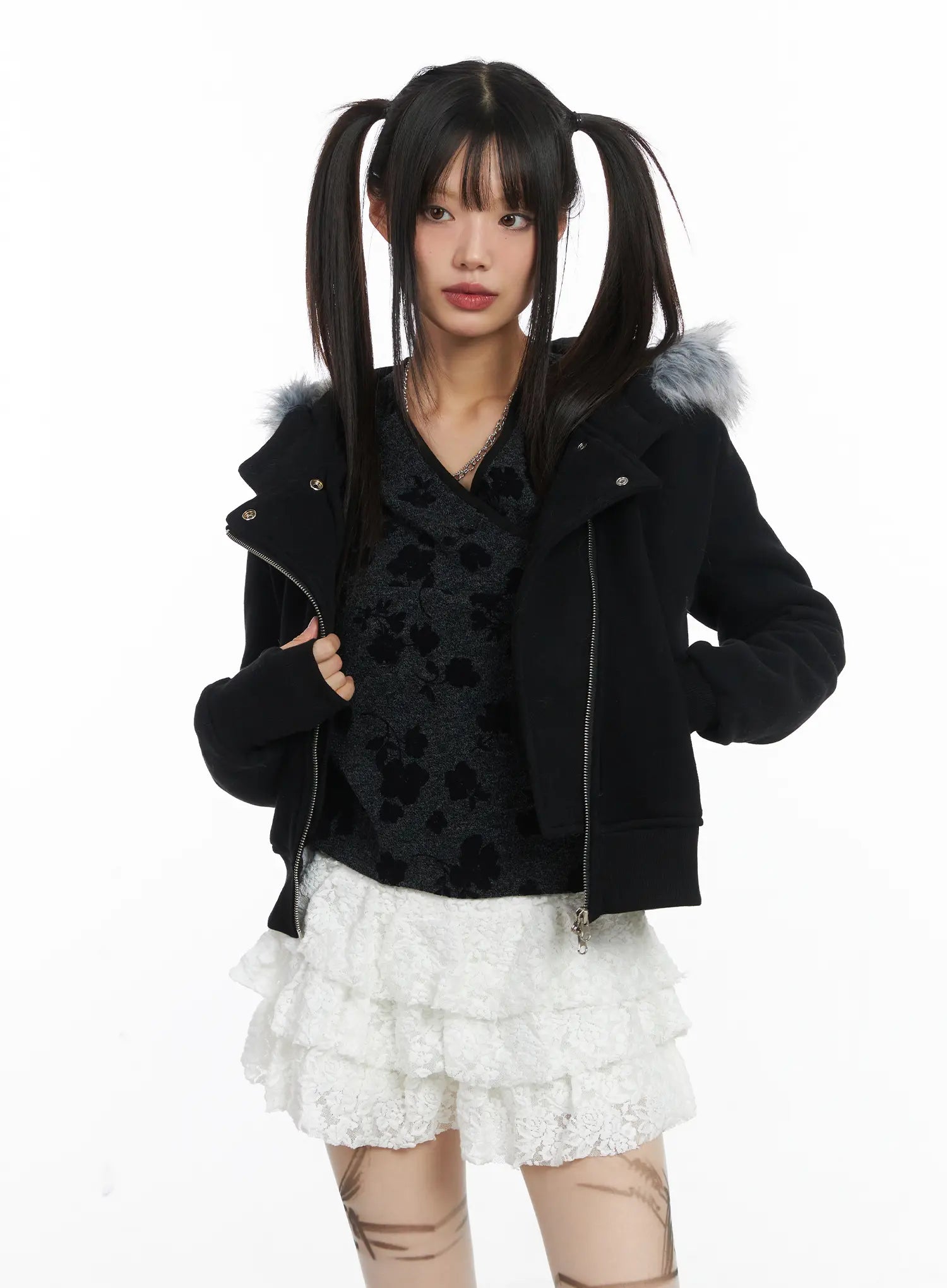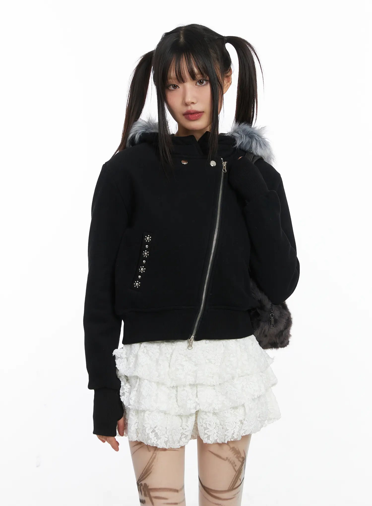 Two-Way Faux Fur Hooded Zip-Up CD518