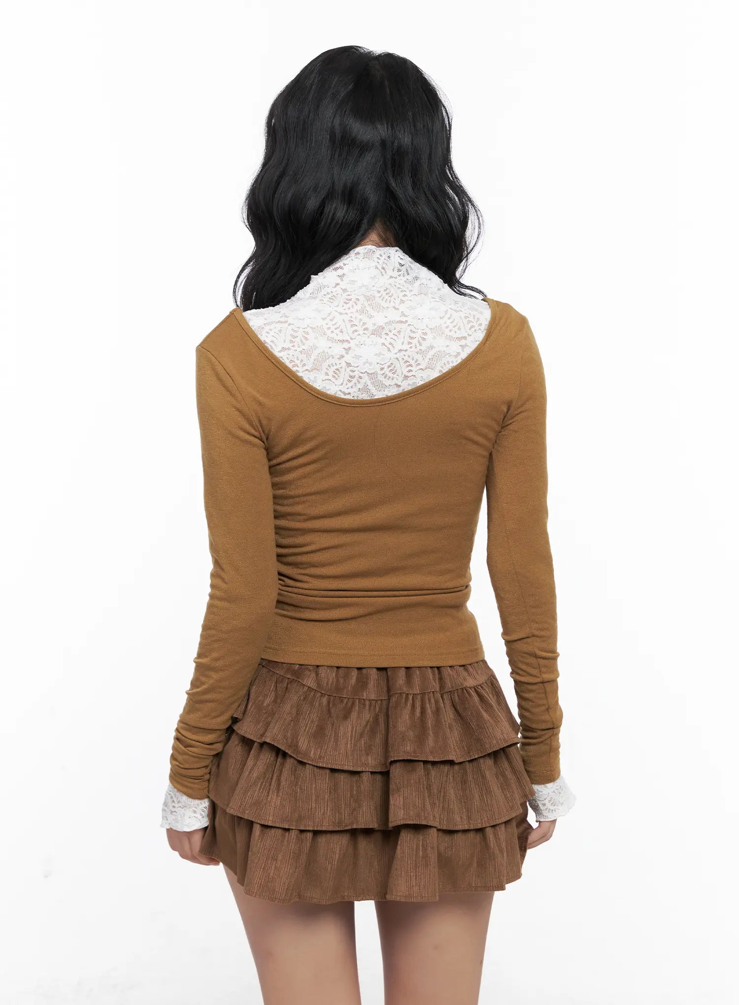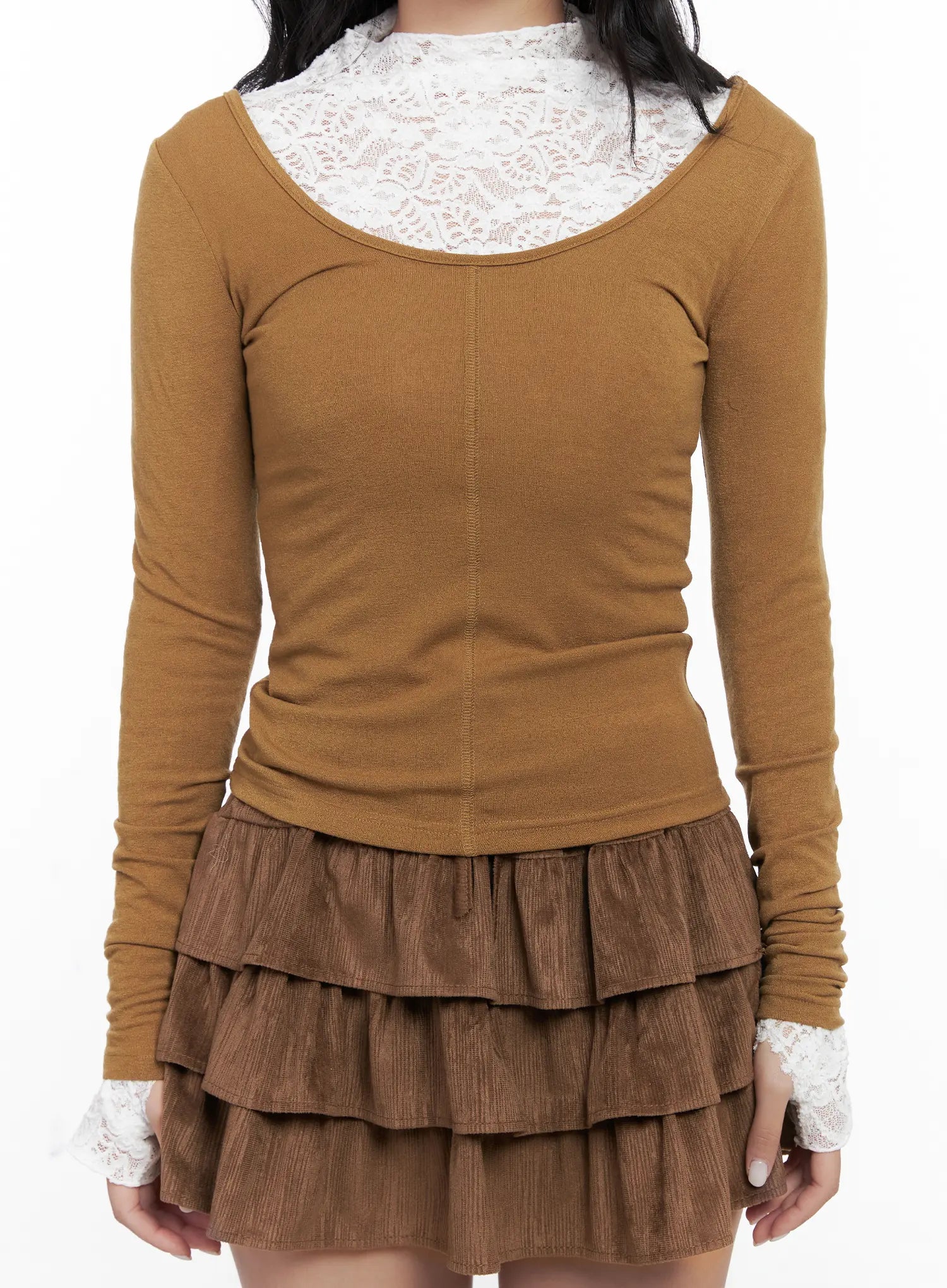 U-Neck Cutout Long Sleeve Crop Top CN514