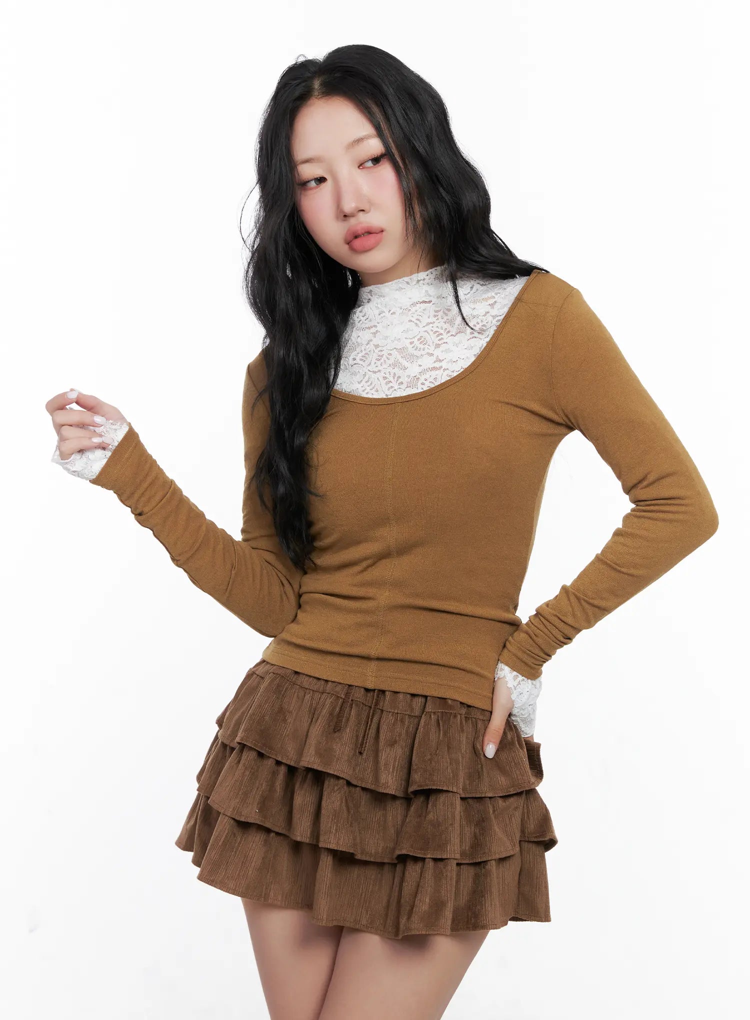Model is wearing size S/M and the color Dark beige.
