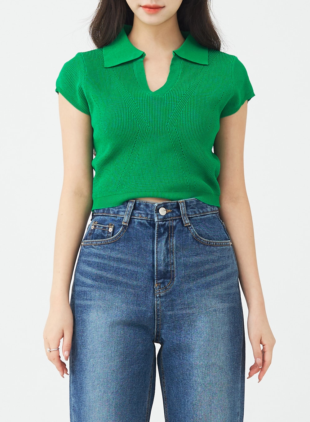 V-Neck Collar Crop Short Sleeve Tee BG09