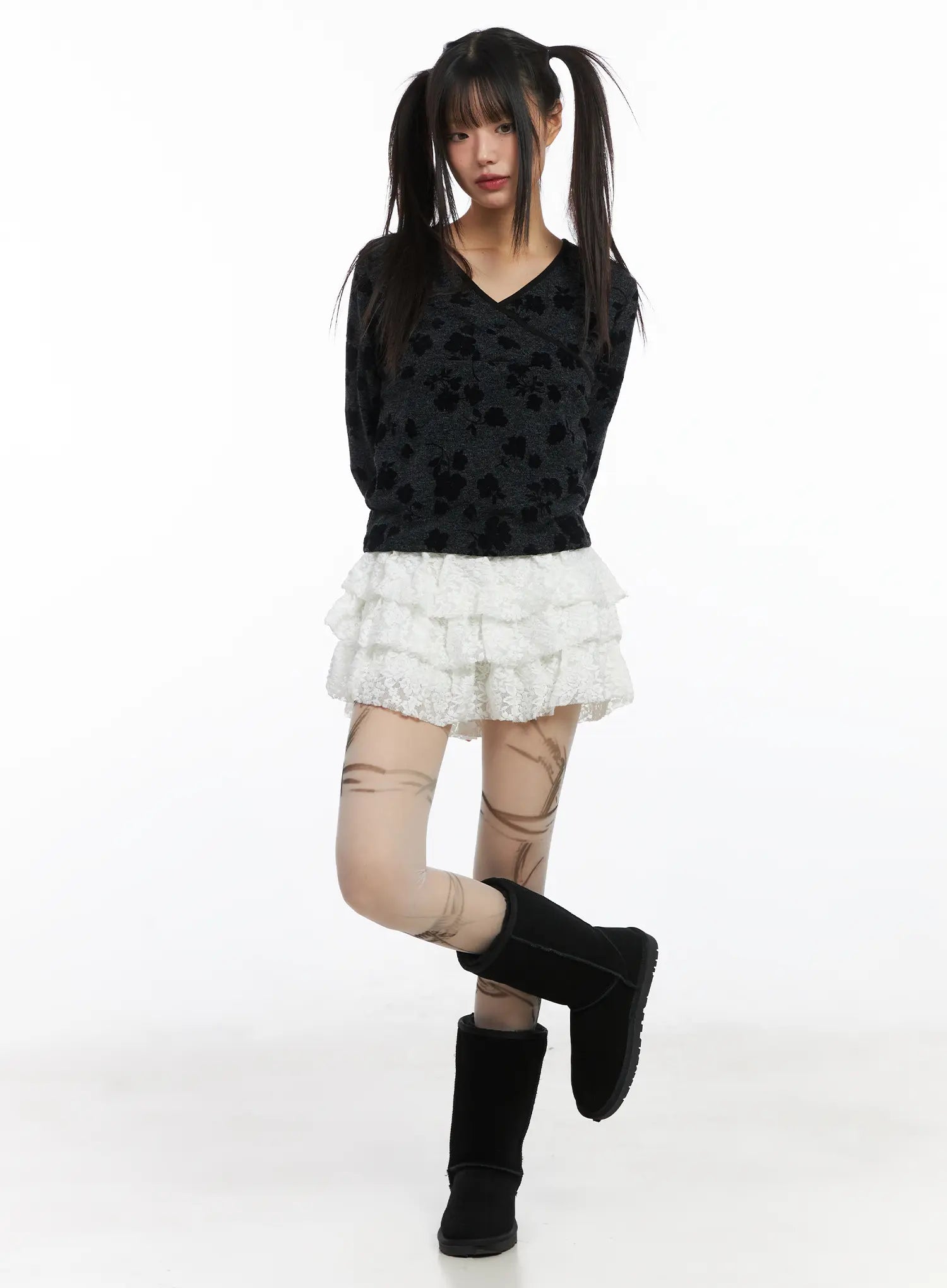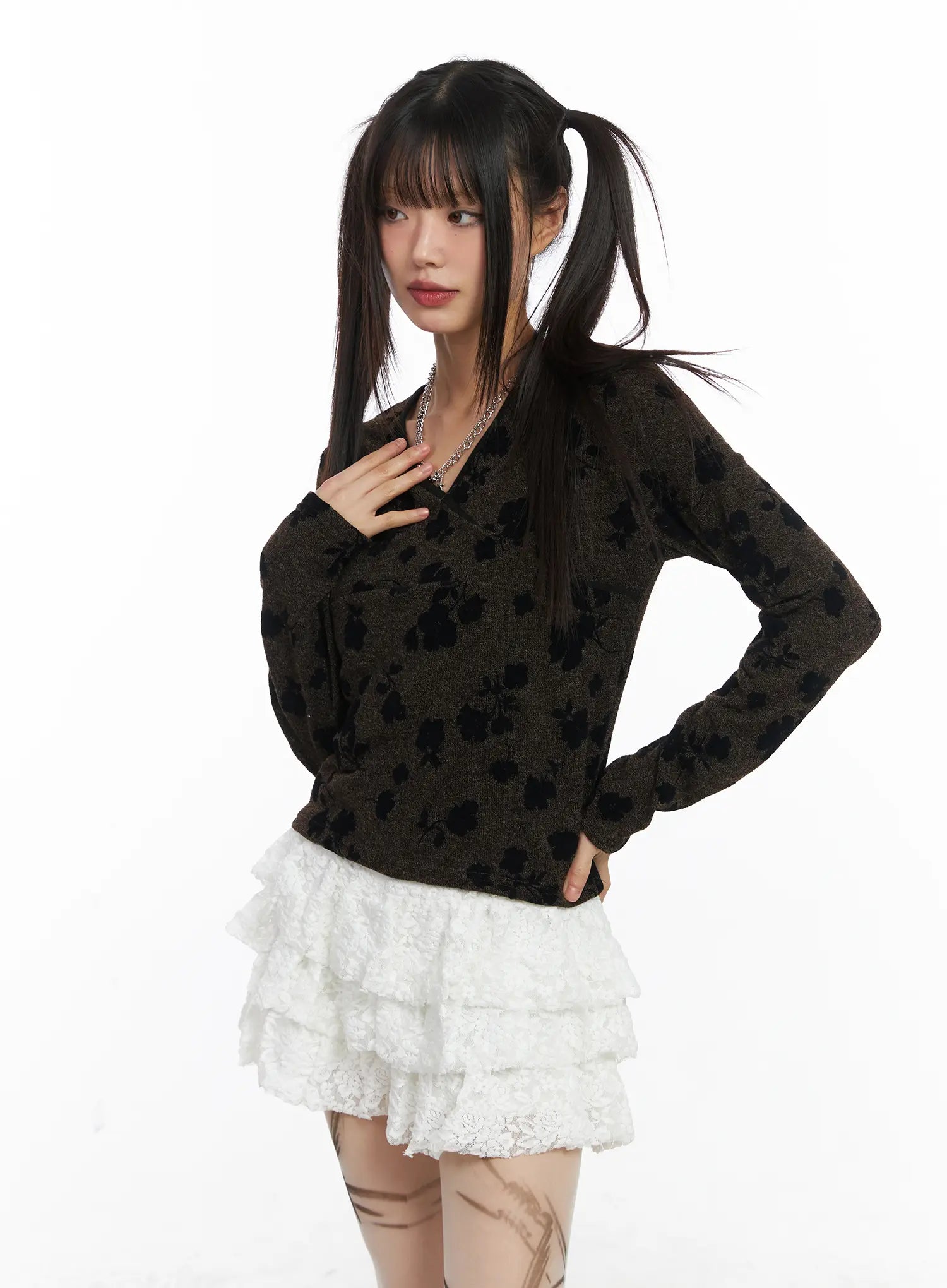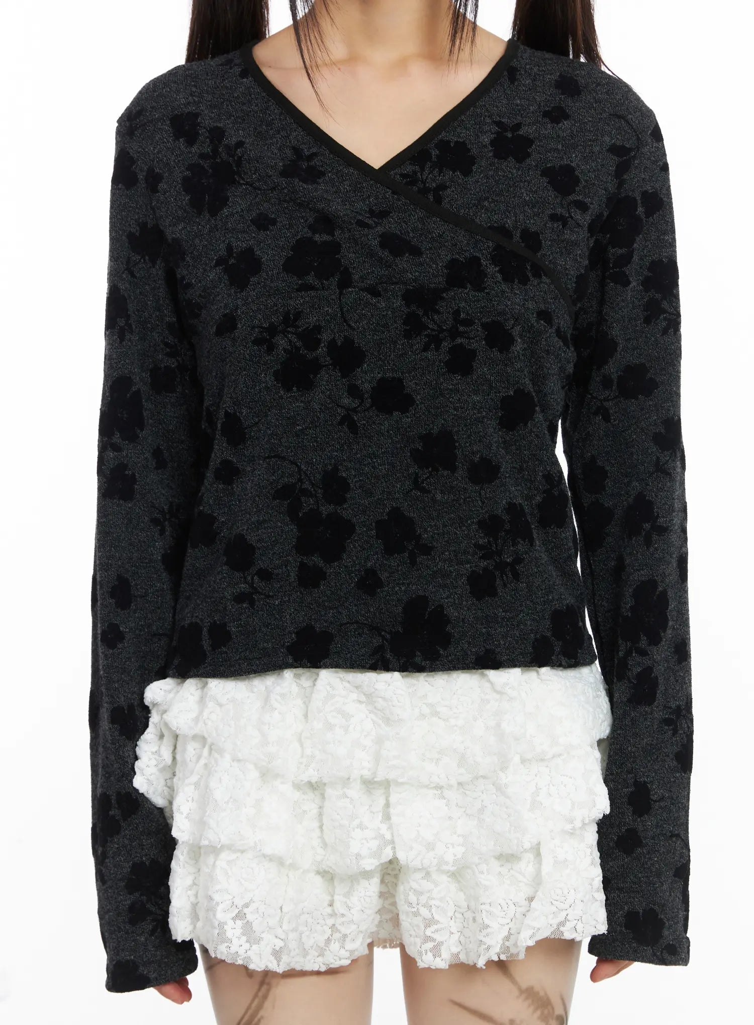 V-Neck Floral Wrap Long Sleeve Top CD518