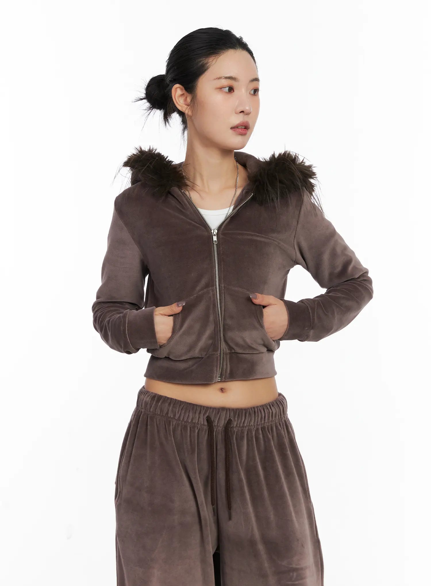 Velvet Zip-Up Fur Hoodie CD508