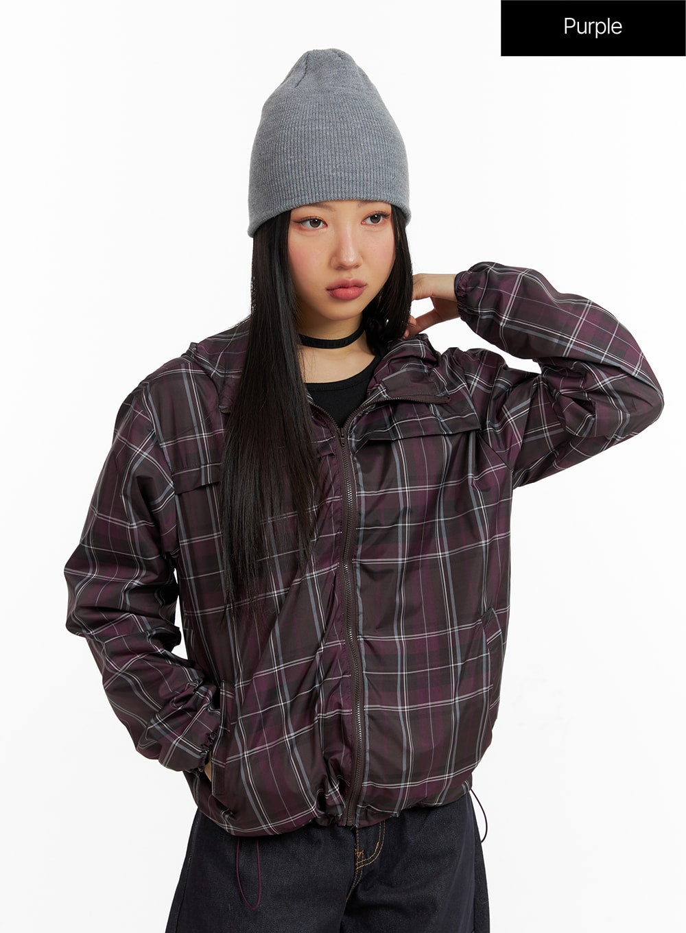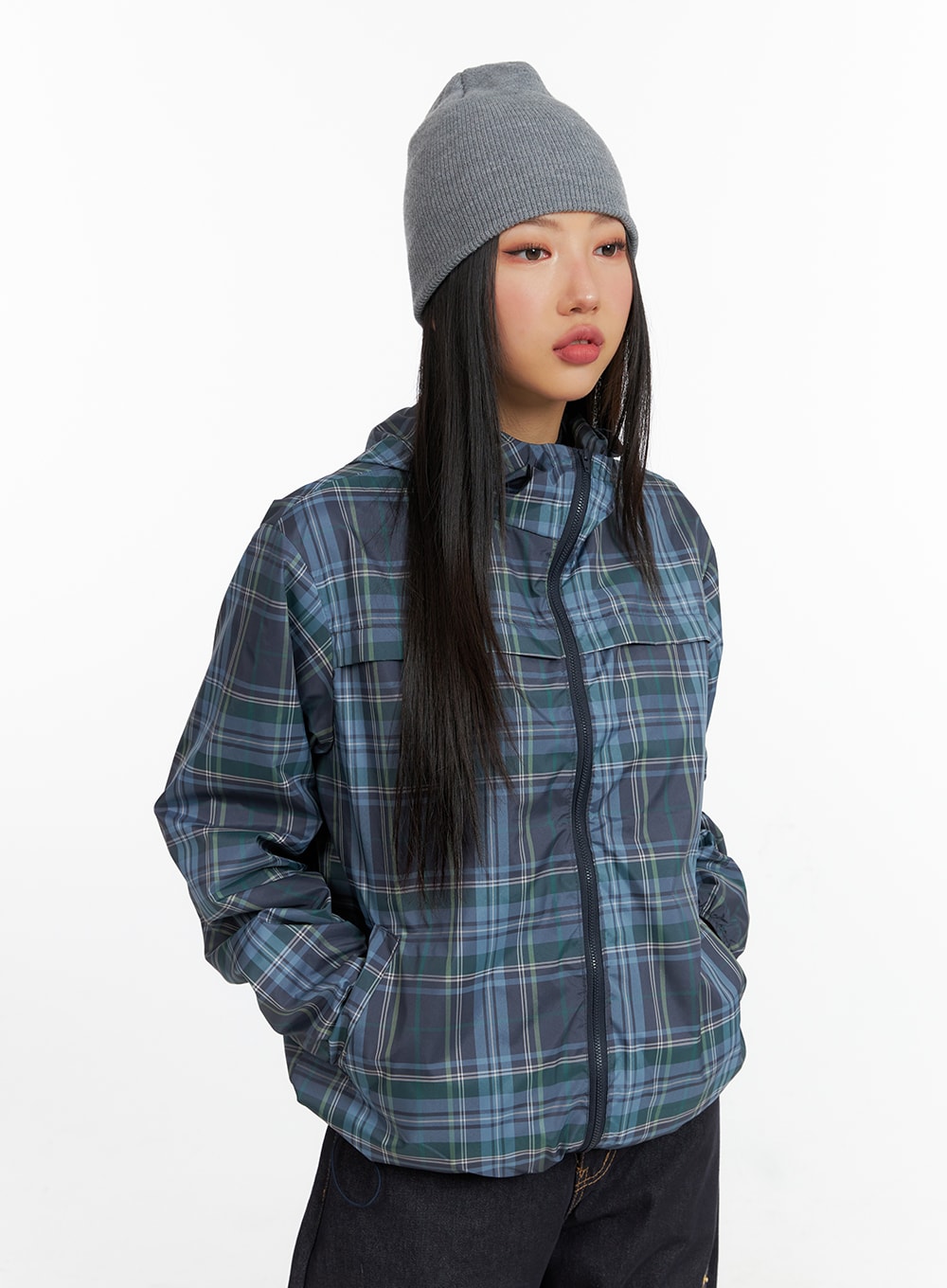 Vintage Checkered Zip-Up Hoodie Jacket CF408