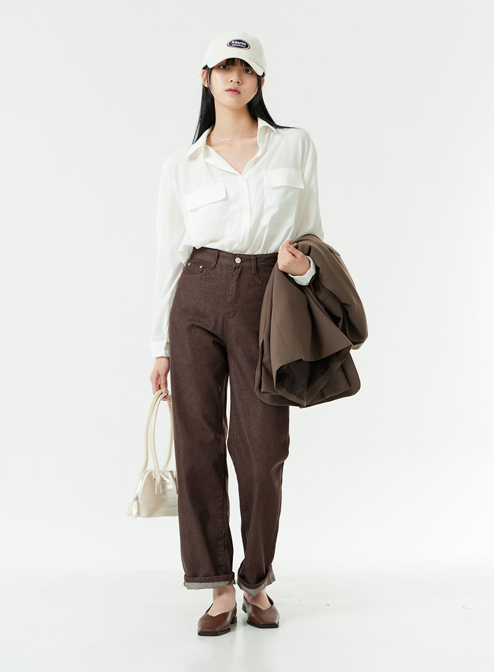Washed Dark Brown Straight Fit Pants OG24