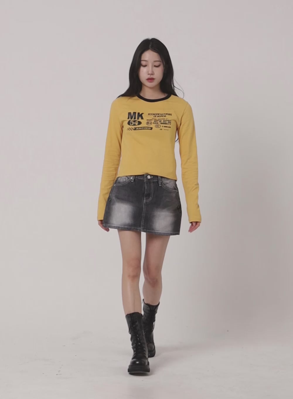 Washed Low Rise Mini Denim Skirt IM405