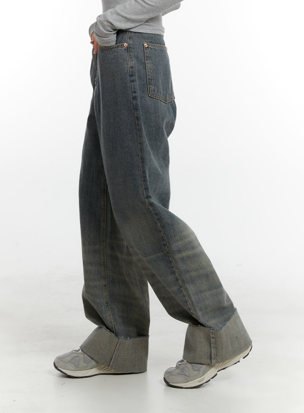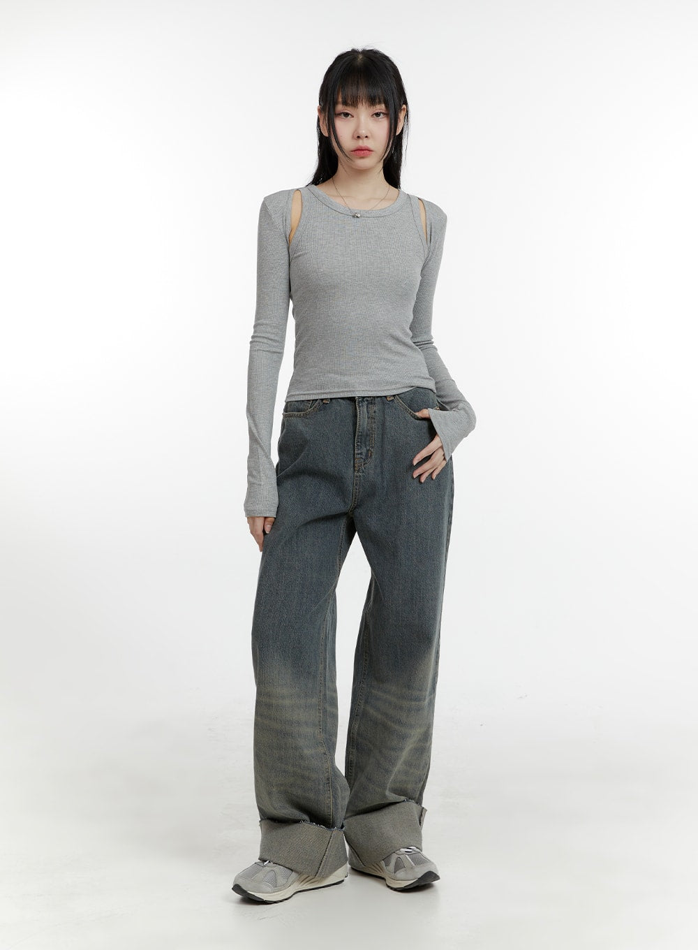 Washed Straight Leg Roll-Up Jeans CA401