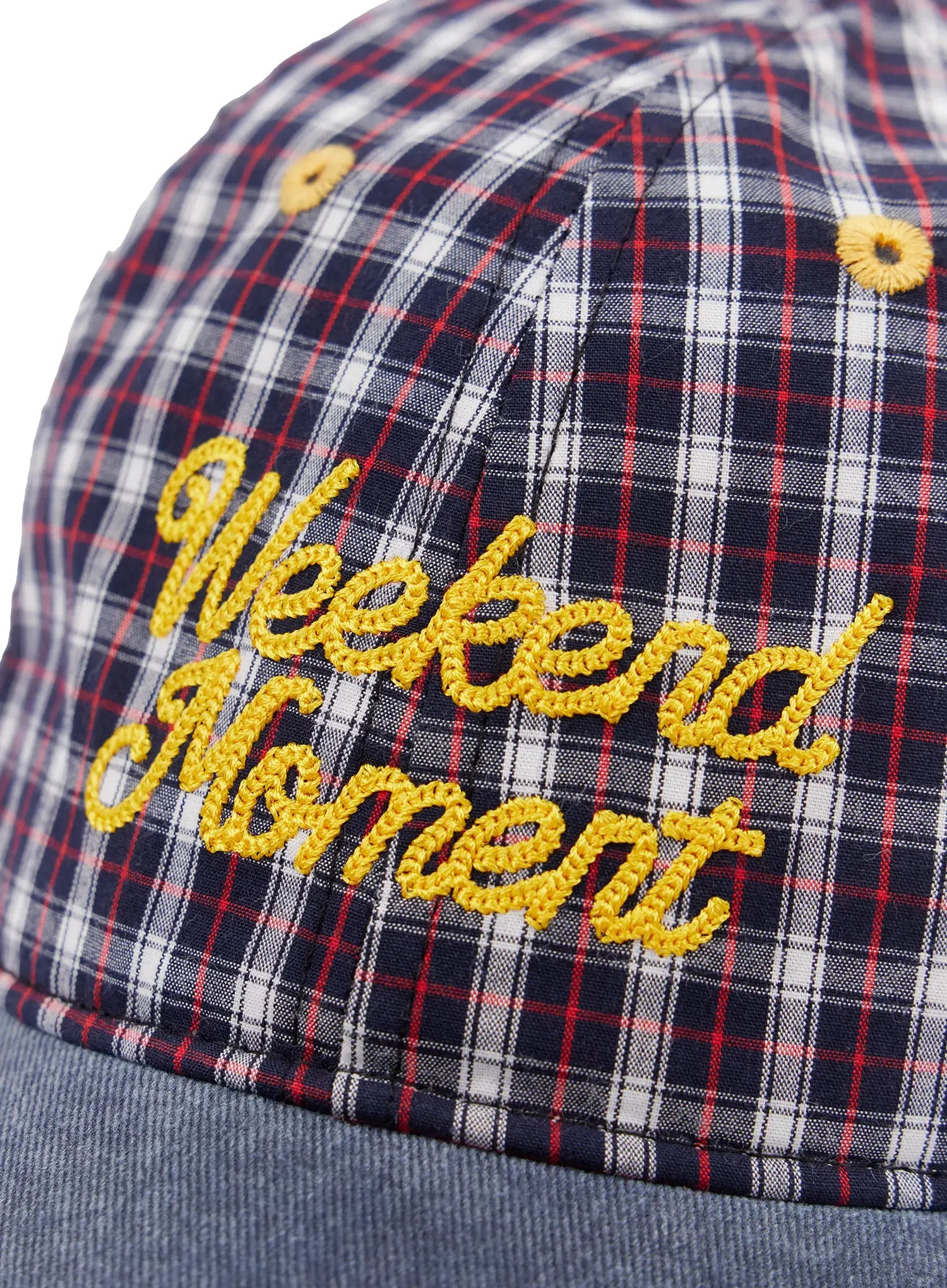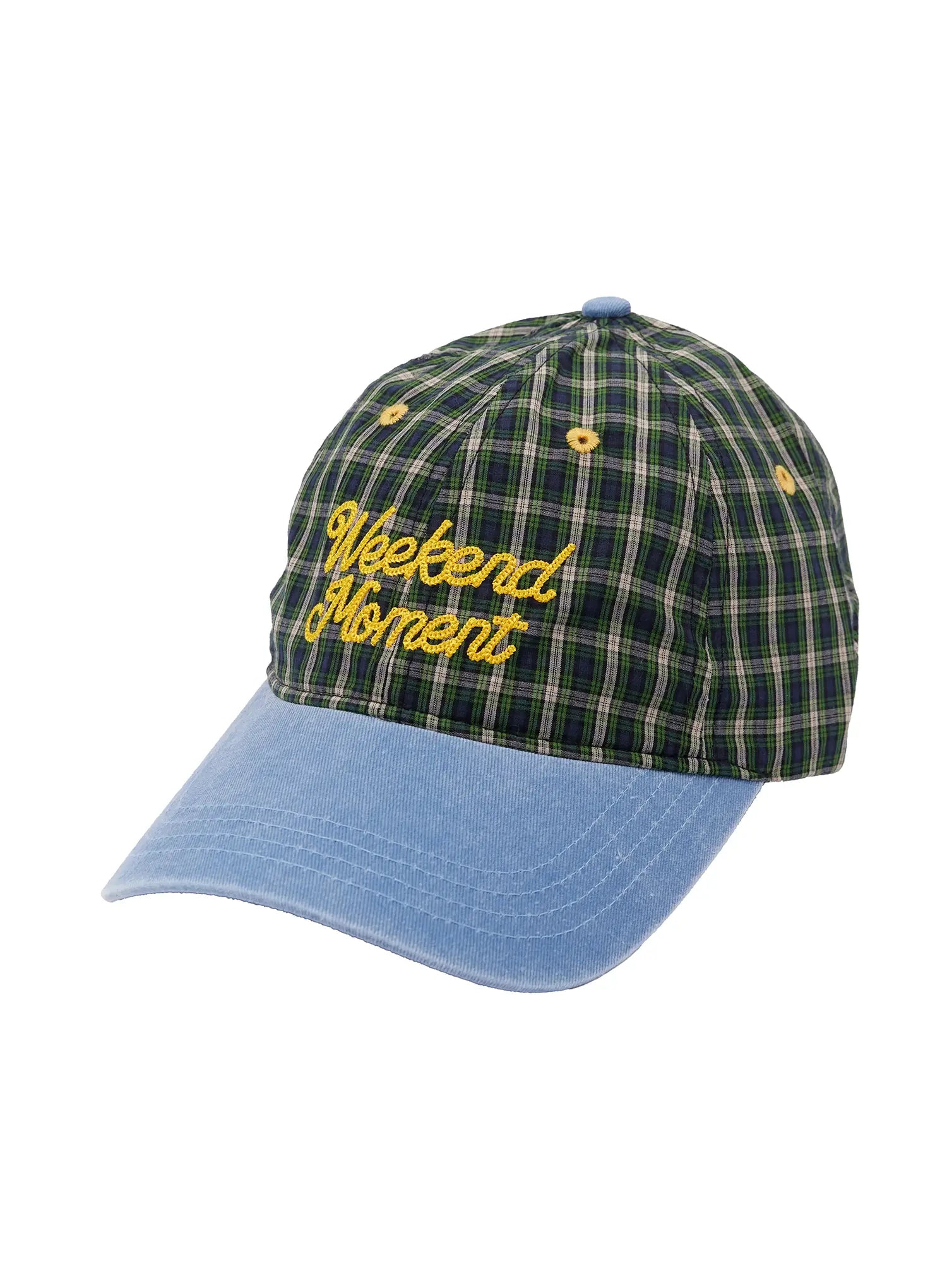 "Weekend Moment" Embroidered Denim Plaid Baseball Cap IF511