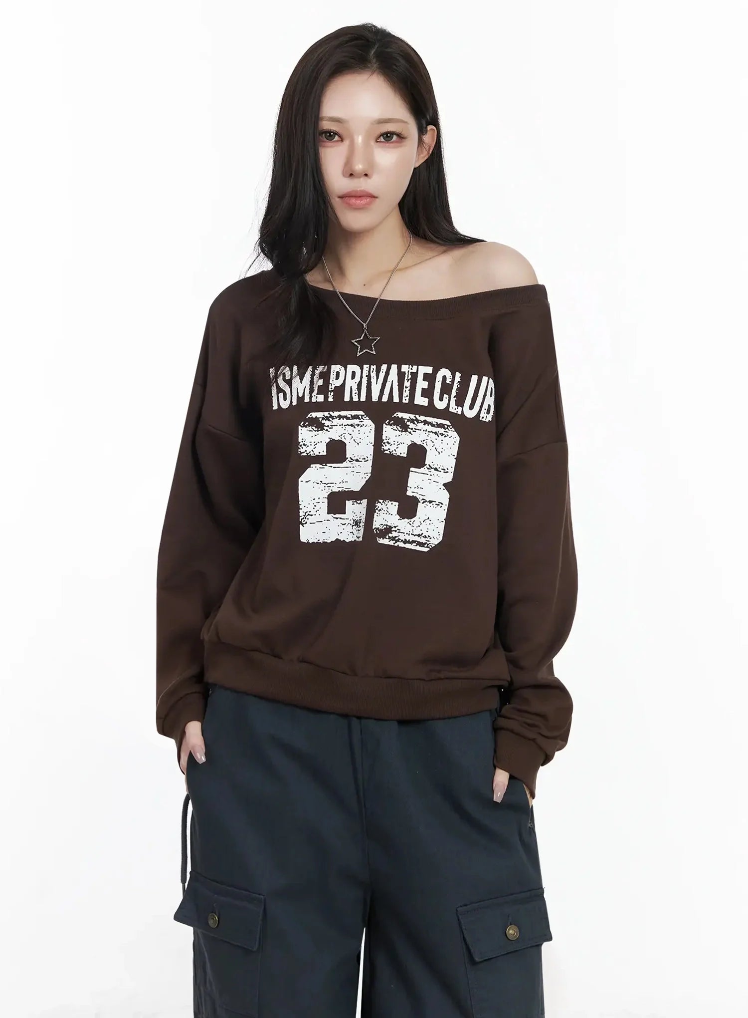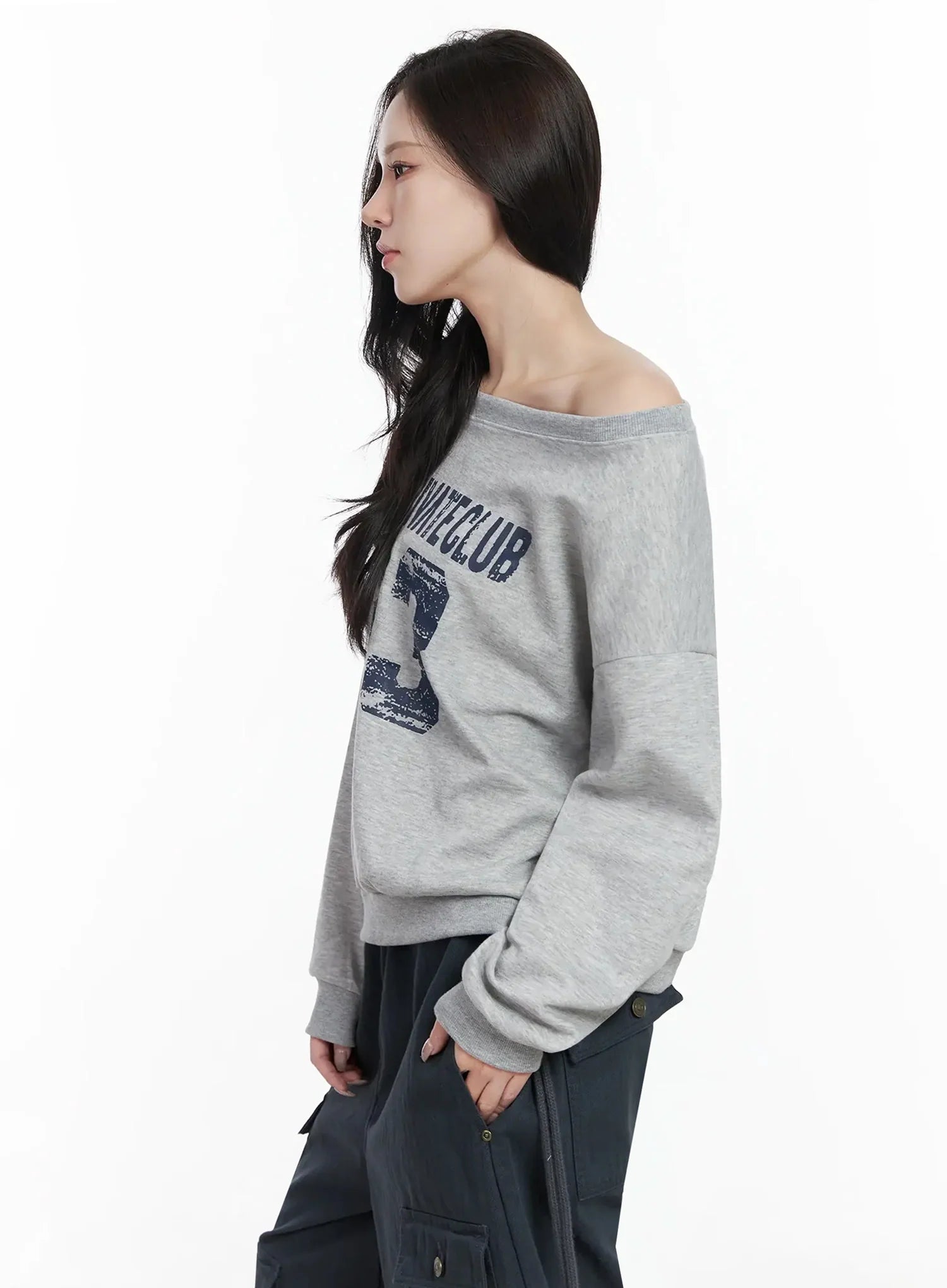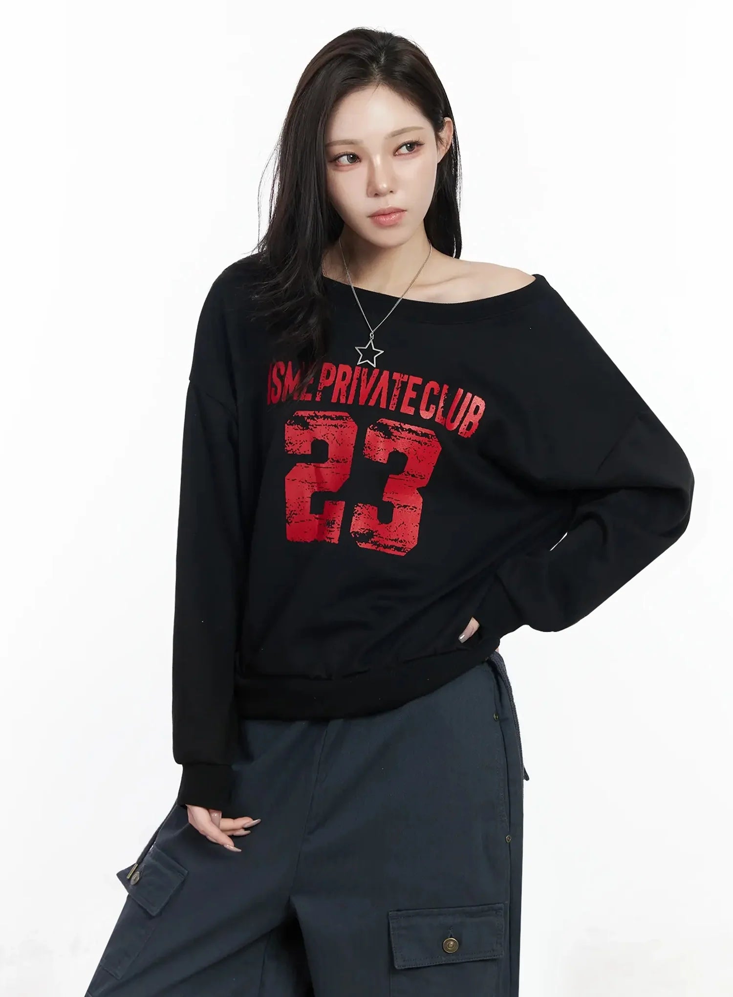 Wide Neck Numeral Graphic Sweatshirt IJ528
