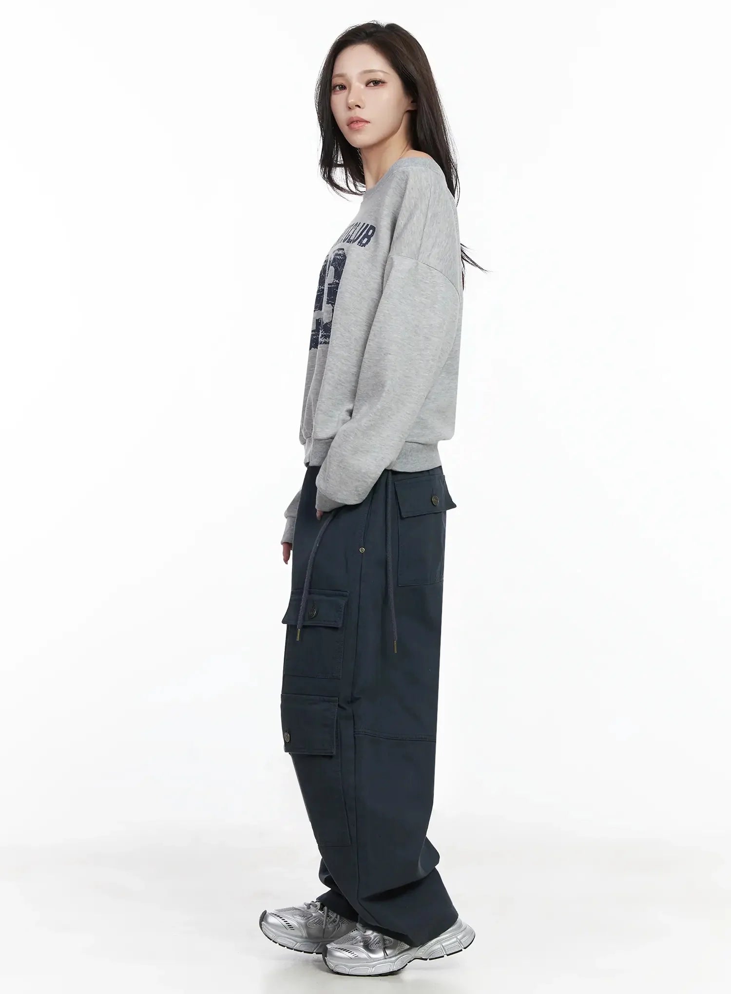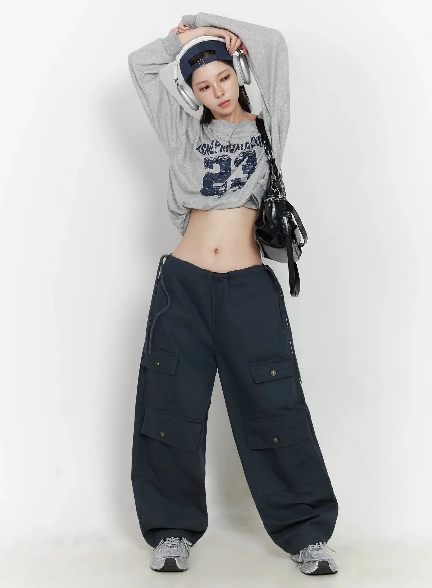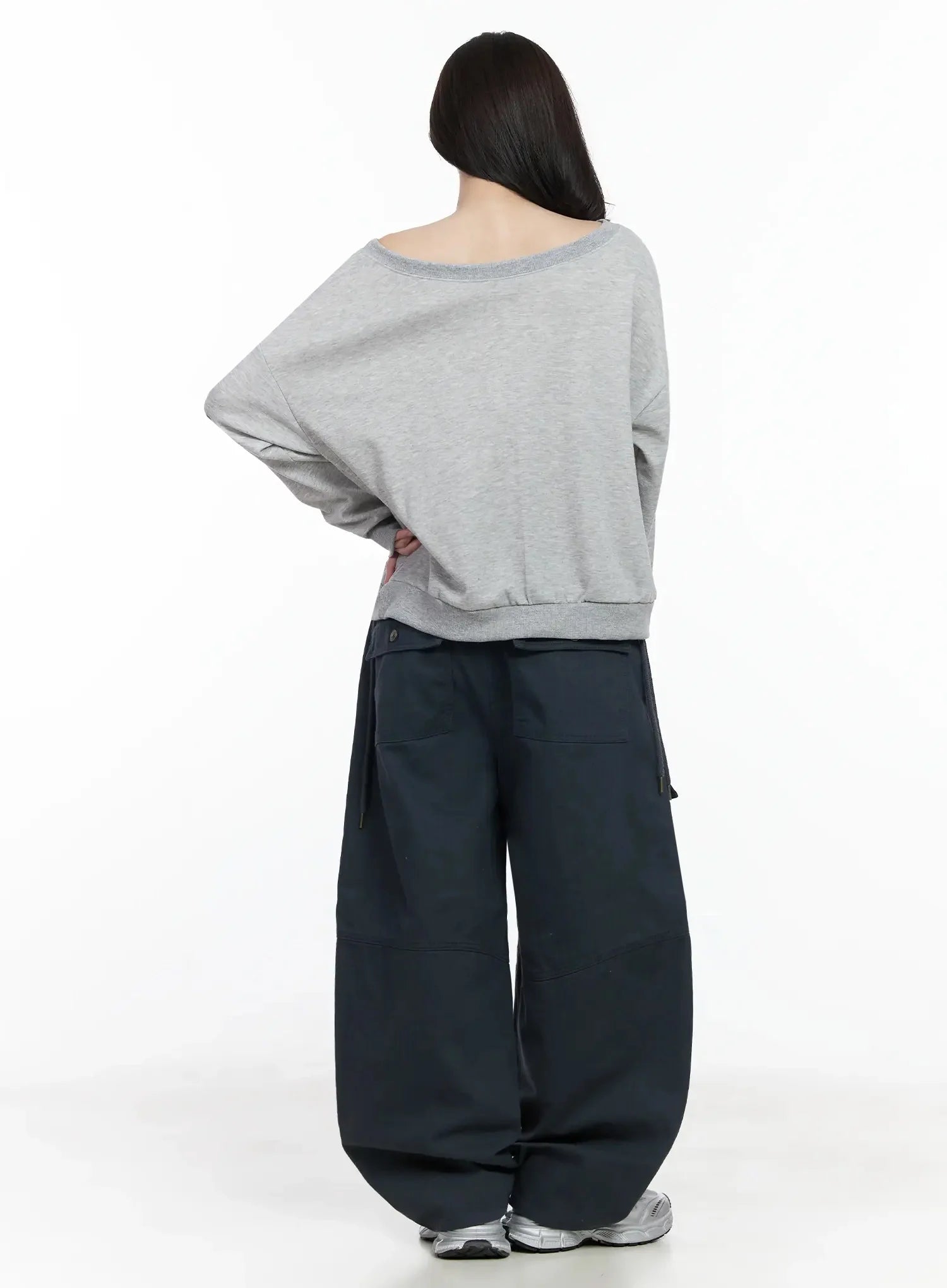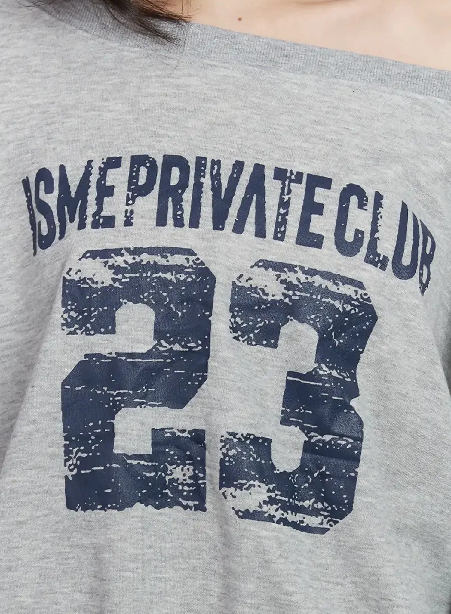 Wide Neck Numeral Graphic Sweatshirt IJ528