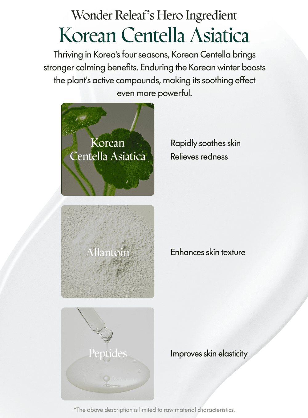 After toner, apply a moderate amount to the face and neck, then gently pat for better absorption. Tip: Use as a priming step before makeup for a smooth, hydrated base with a natural glow. For the ultimate soothing routine, follow with the Wonder Releaf Centella Toner Unscented and Wonder Releaf Centella Cream Unscented.